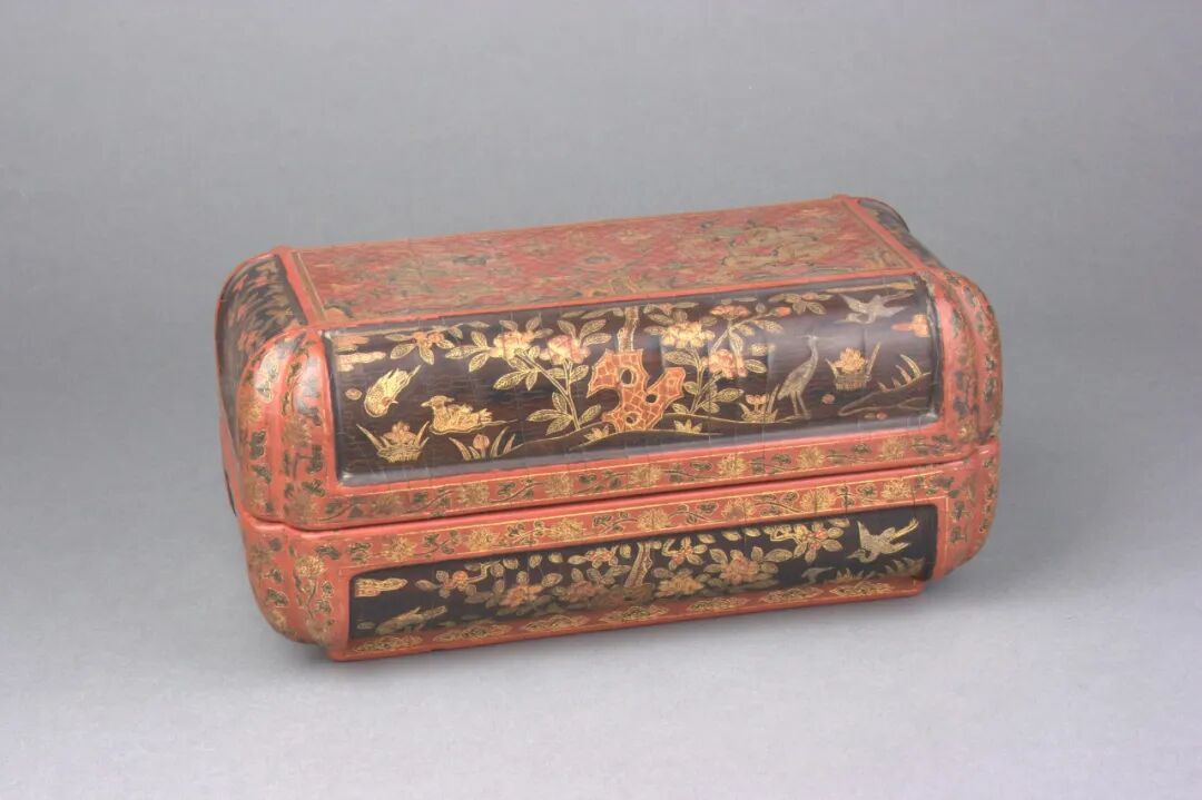 鎗(qiāng)金彩漆云龙荷塘纹漆盒 明