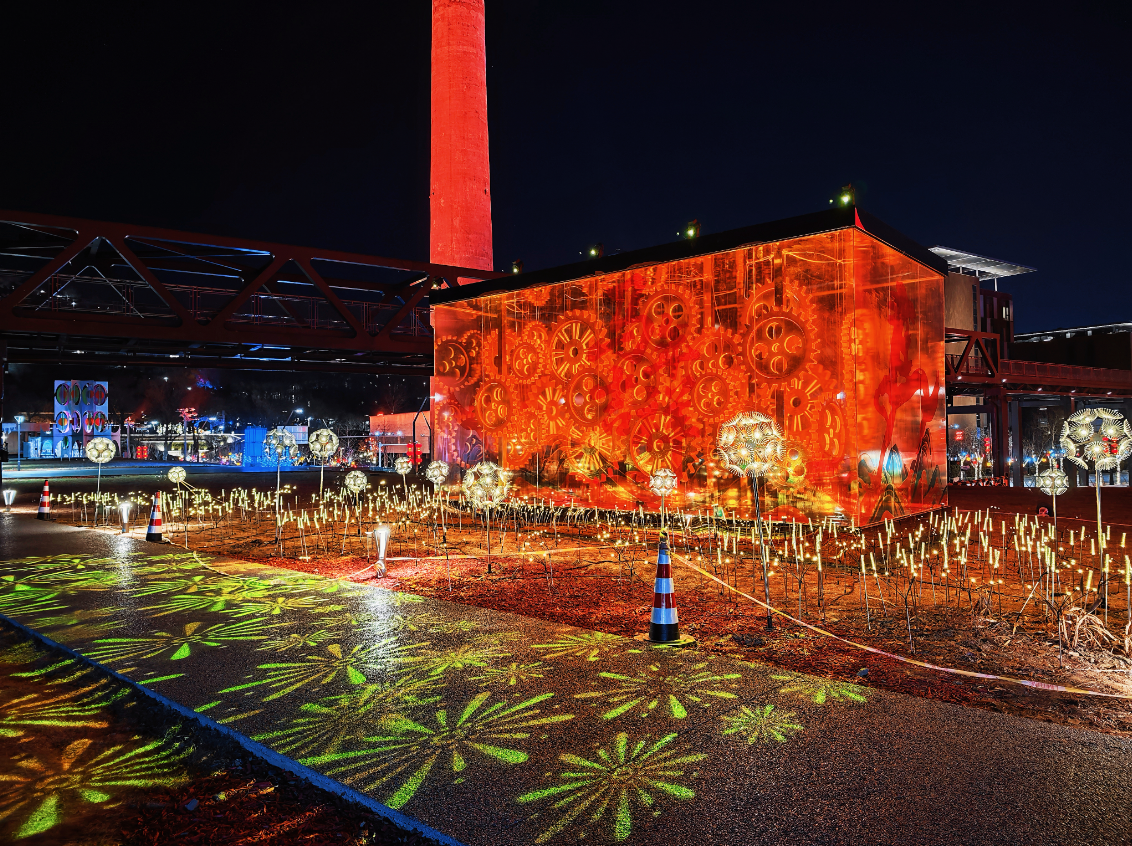 不只是道路。在锦绣之丘公园、新安记忆公园、永定河市集、首钢厂东门,四大主题景观节点也同步点亮。首钢东门的“马跃新程”灯组,寓意开启幸福之门,新旧对话悄然发生。