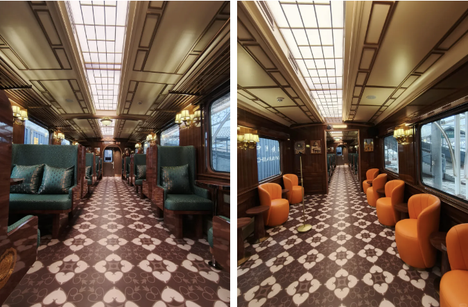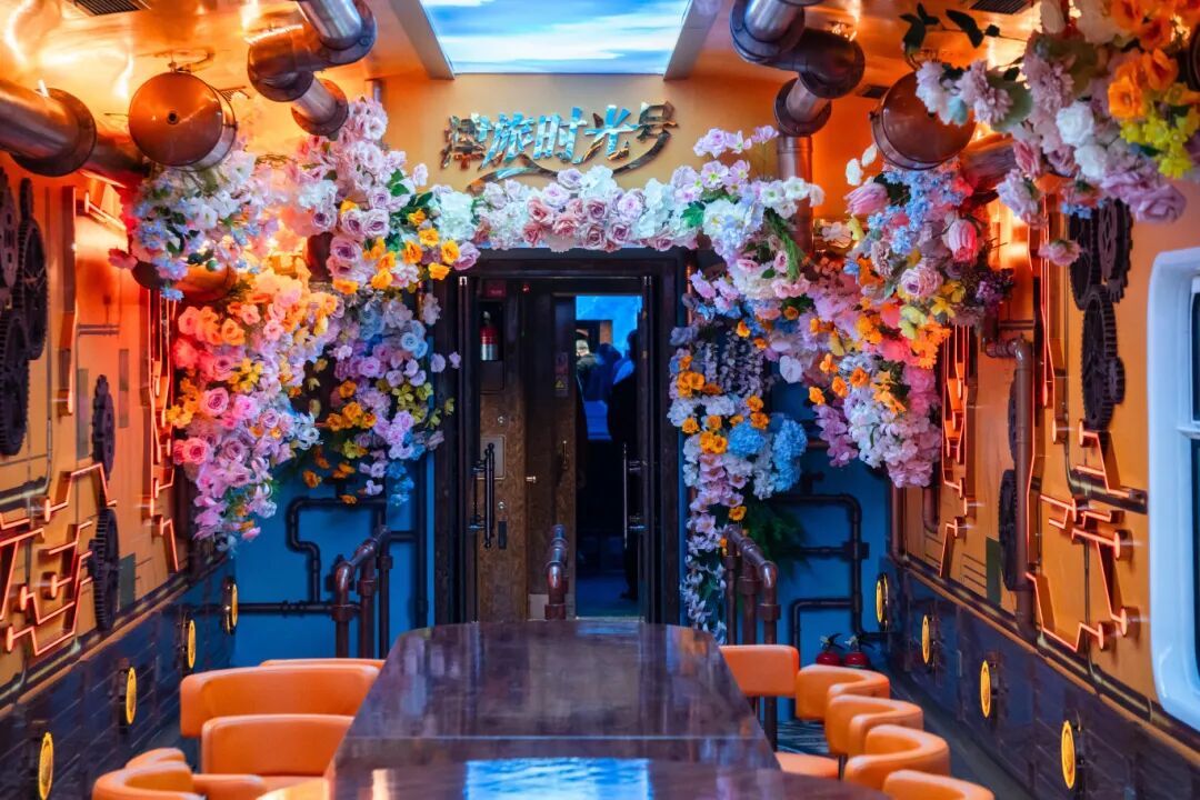 “津旅时光号”以“奇幻时光”为设计主线,将天津传统文化、非遗艺术与现代科技相融合,打造行走在钢轨上的“移动文旅地标”。