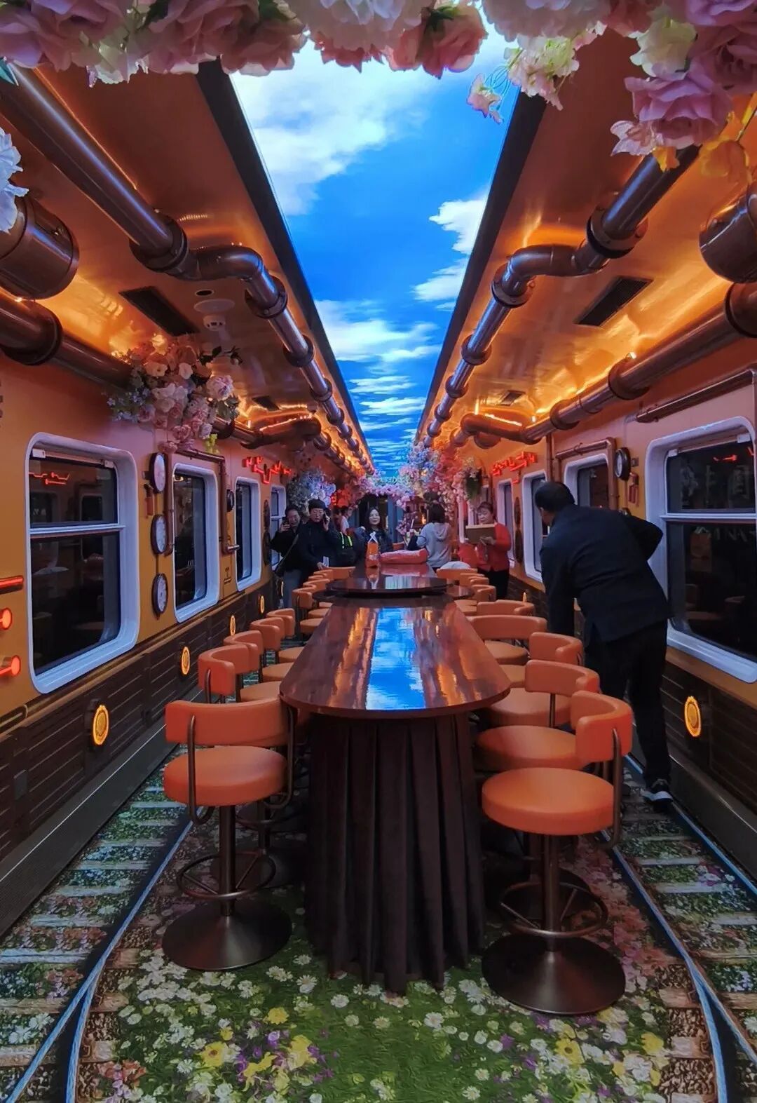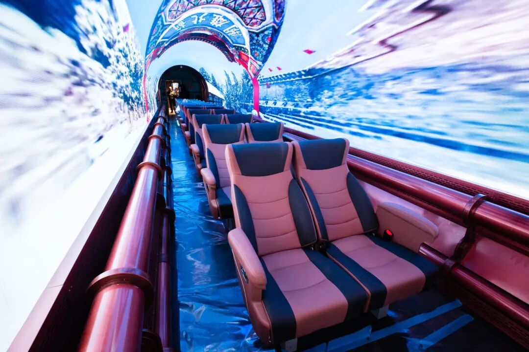 整列列车由10节主题车厢组成,围绕客座区、VIP区和互动体验区三大功能板块进行布局,通过戏剧化空间设计与功能整合,使每节车厢兼具观演与互动属性,不同主题车厢协同运作,让旅途本身成为一段连续展开的沉浸式体验。