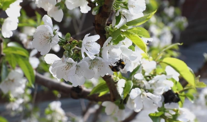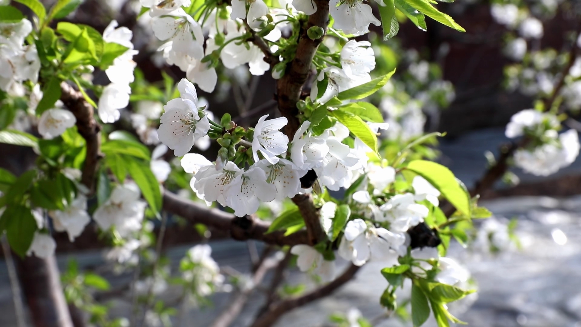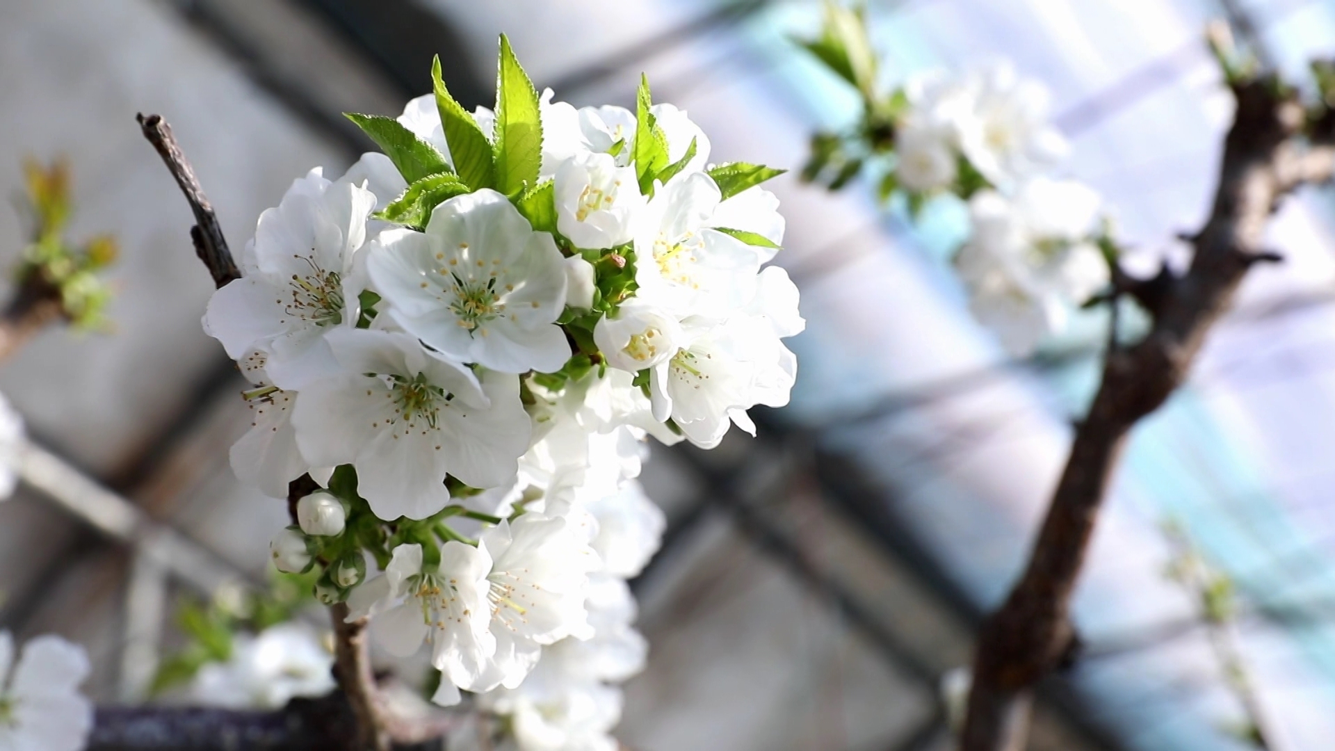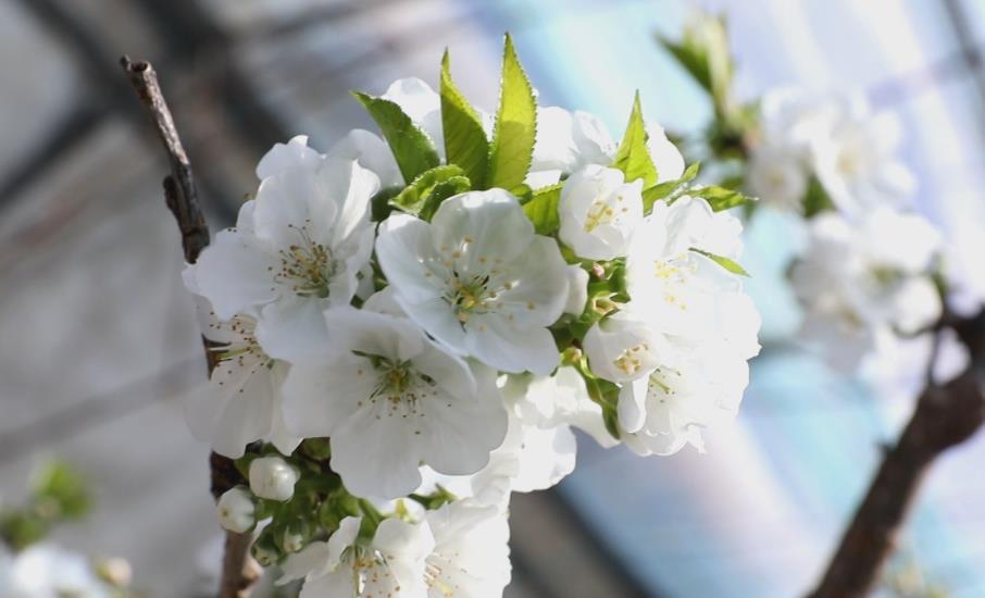 棚外冰天雪地,棚内生机盎然。在密云区高岭镇一处樱桃大棚里,一簇簇雪白的樱桃花俏开枝头,花香四溢,不少市民来此赏花拍照,享受早春的美好时光。