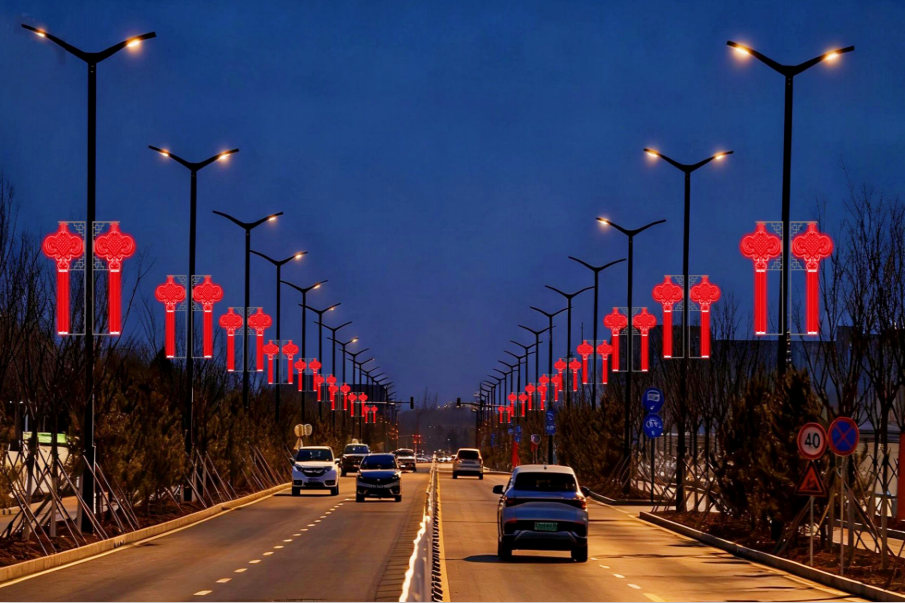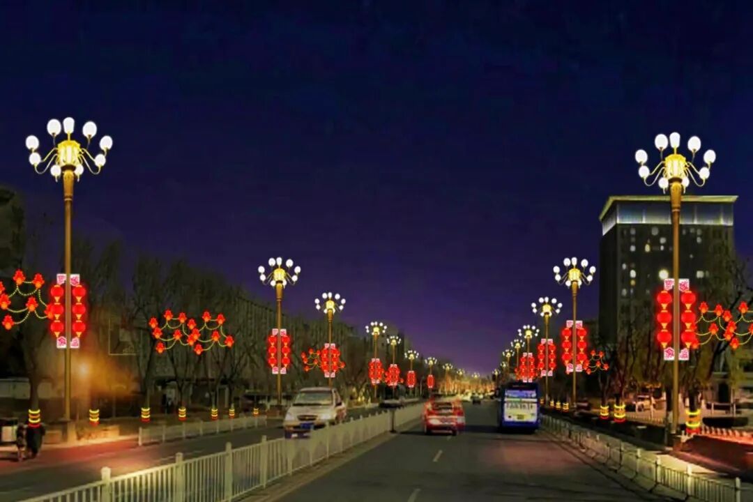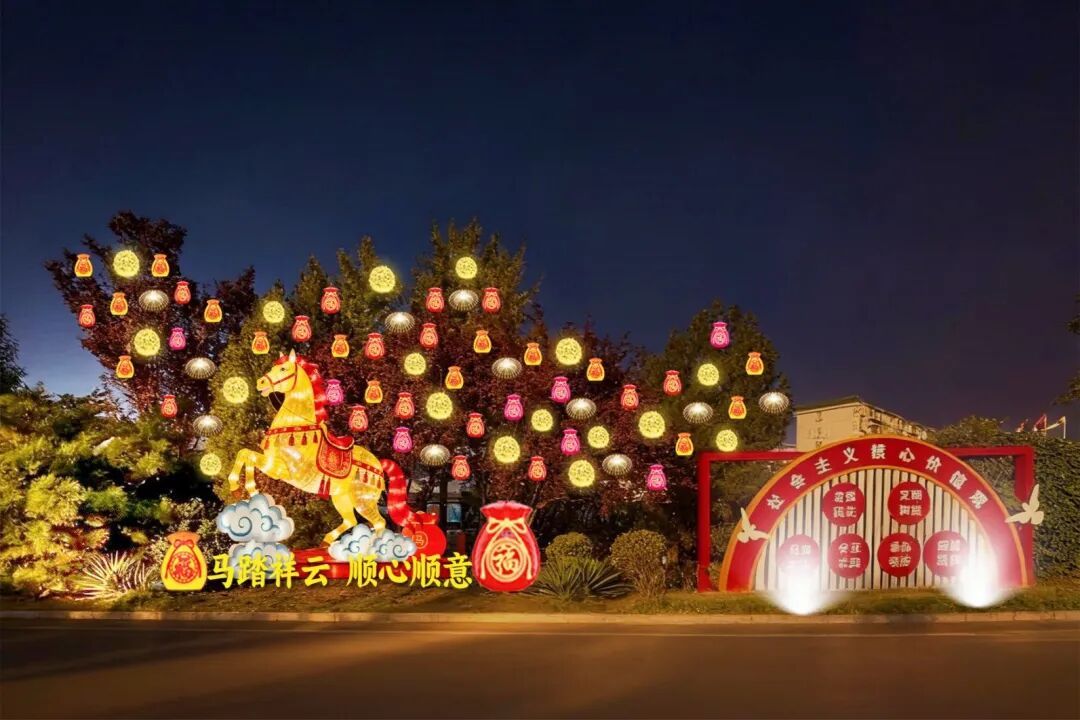 复兴一街与通顺路交叉口中央绿化带主题花灯效果图。