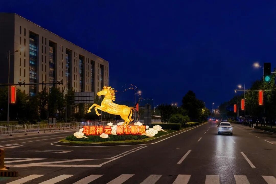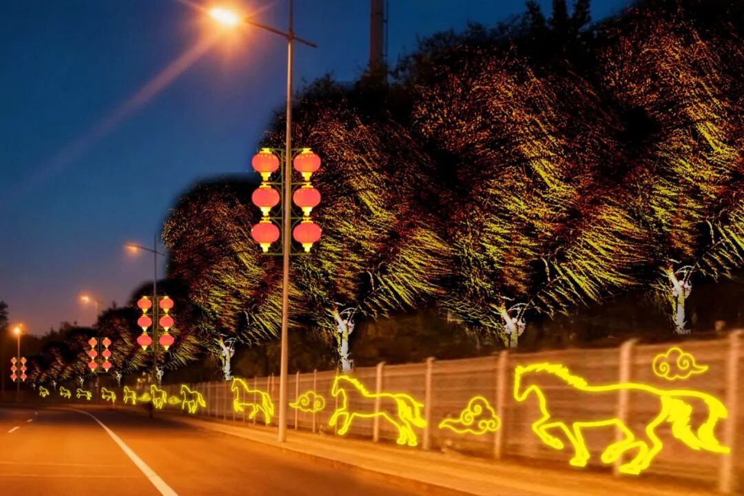 右堤路沿线的灯笼灯饰和生肖骏马彩灯效果图。