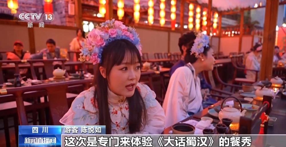 游客 陈悦如:这次专门来体验《大话蜀汉》的餐秀,比单纯逛古镇更加新颖的体验。