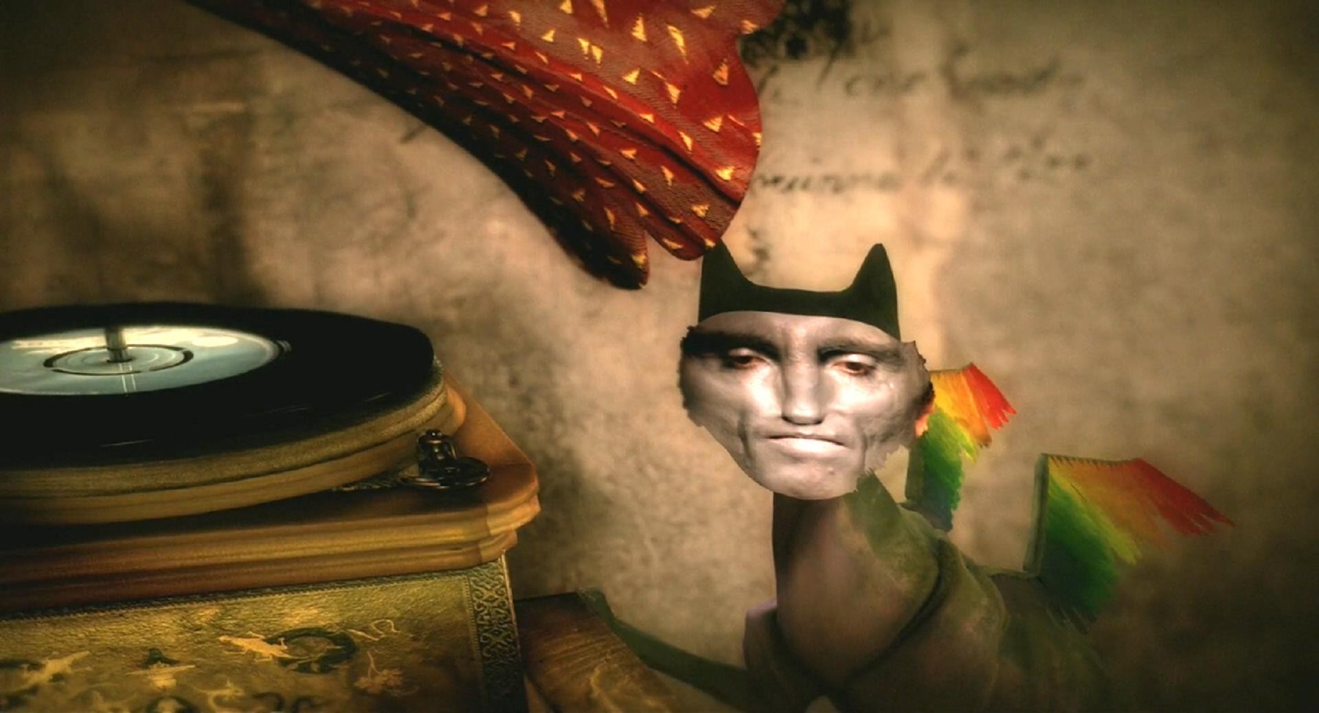 海伦娜的梦中,有带着面具的瓦特丁,有带着人脸面具的会飞的猫,用零件拼凑的图书管理员,独眼的蜘蛛,黑暗女王的音乐盒、钥匙守卫者等等,有的是她画中的人,有的是她现实中遇见的人,这些怪异的形象都是现实的反应;