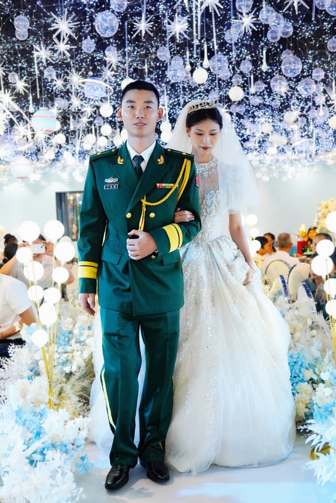 有人说跨越4000公里的军恋很难,但缘分还是让我们最终相遇。婚礼上,你说不要太煽情,所以我们选择了幽默的仪式风格,但我知道你只是不想再提起这一路走来的艰辛历程。爱琦同学,感谢你的支持与理解,我愿爱你一生一世不分离,护你疼你一辈子。