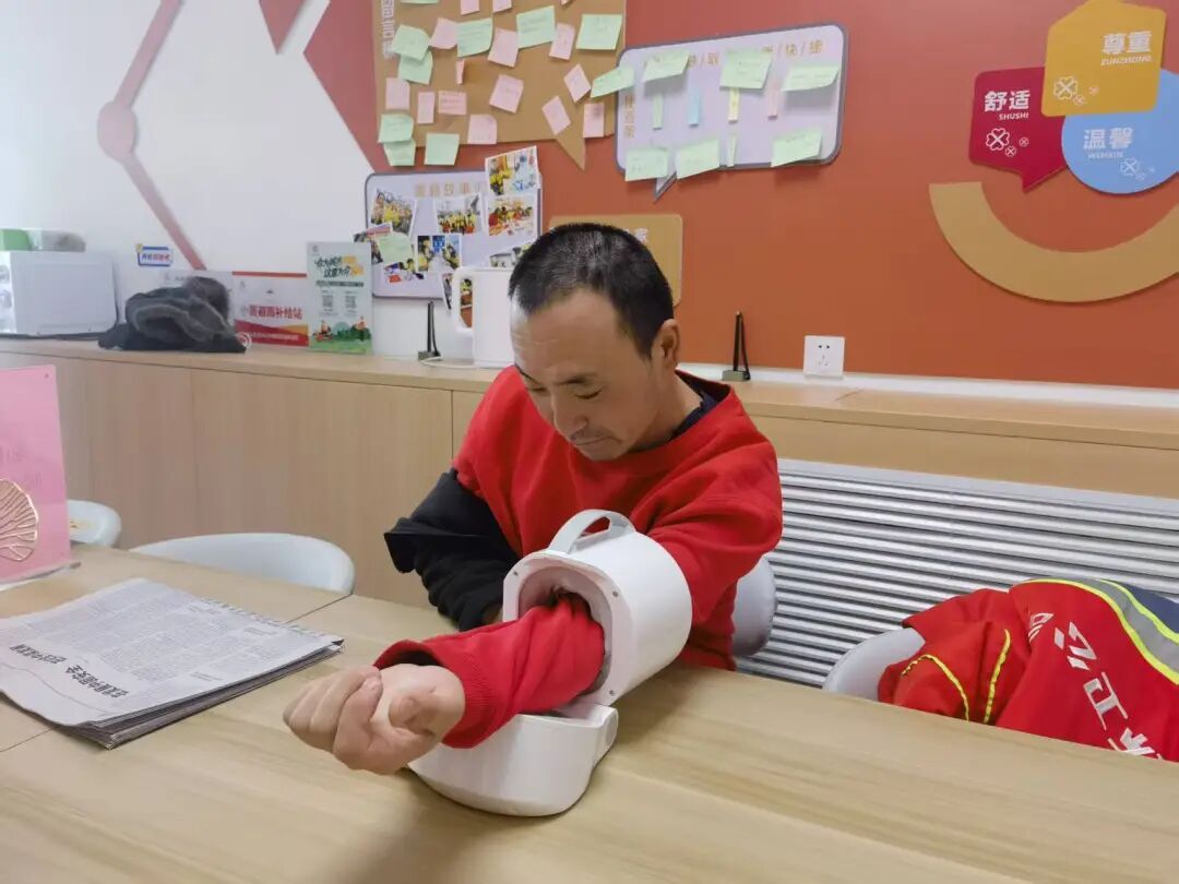 环卫工人于昌鑫说:“天冷路滑,我们轮班清扫,保障道路畅通。有这个驿站,随时能进来喝口热的、歇口气,还能测测血压、贴上暖宝宝,这暖意是实实在在的。”
