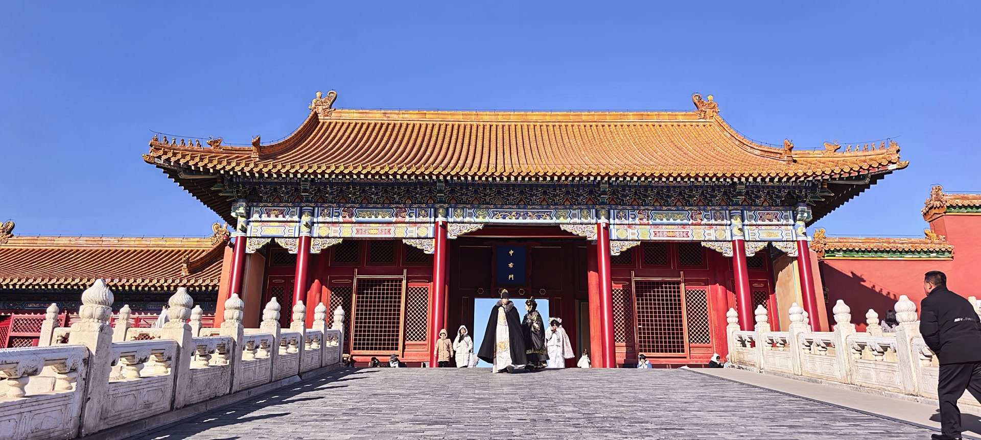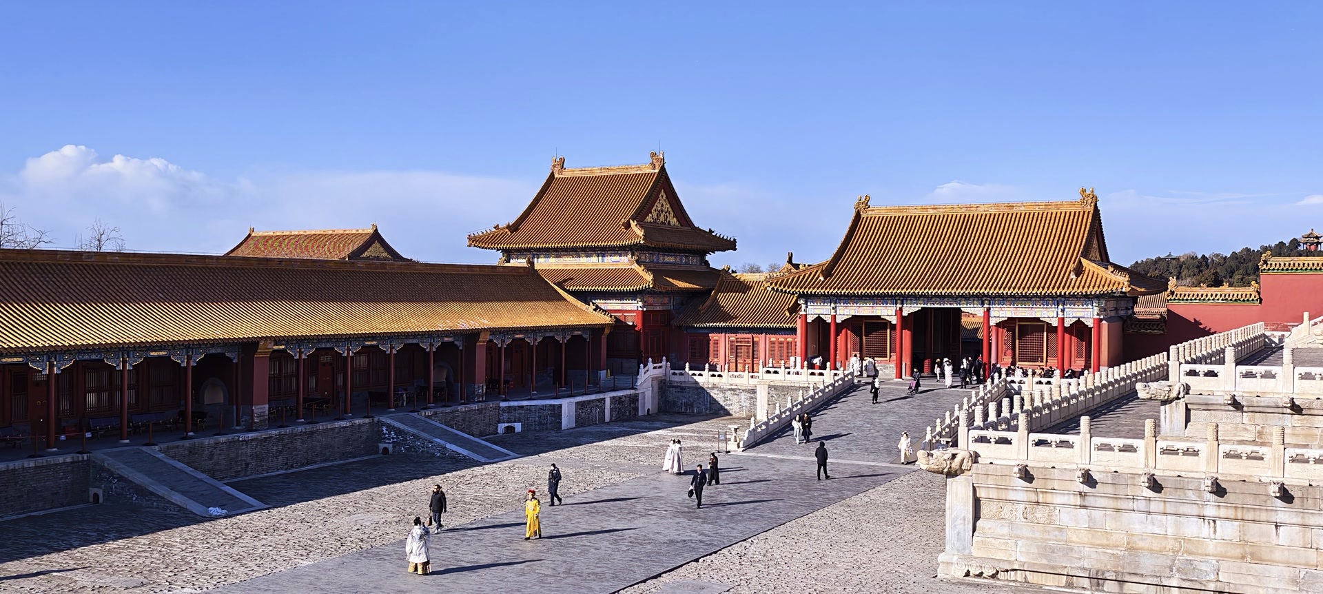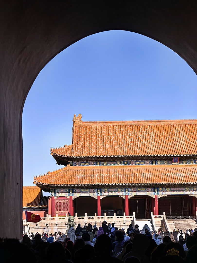 1月10日,寒风呼啸,挡不住游人的热情。蓝天下,故宫依然独具风情。