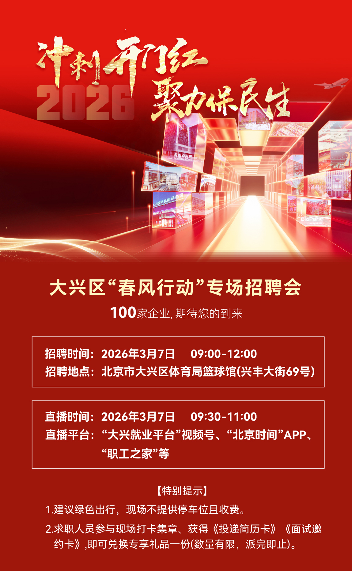 百家用人单位2000岗位 3月7日大兴区春风行动专场招聘会就等你来_北京时间