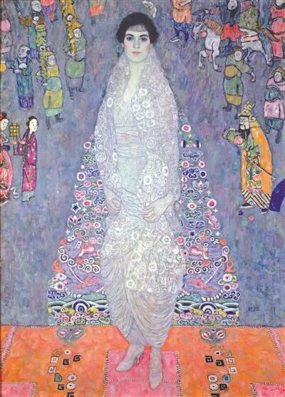 1914年,克里姆特接到了维也纳第二富有的家族,也是其最大艺术赞助人奥古斯特夫妇为独生女伊丽莎白绘制肖像的委托。画家历时三年完成了这幅精美的整身肖像,在创作过程中反复调整画作细节,似乎怎样调整都不能让他满意,直至赞助人将作品从画室中带走。