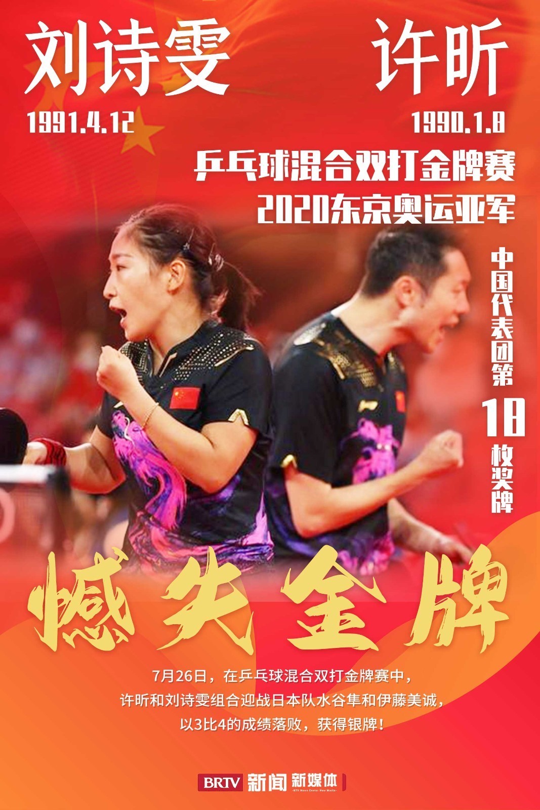 在刚刚结束的东京奥运会乒乓球混双决赛中,中国组合许昕/刘诗雯在先赢两局的情况下一度被对手连扳三局,最终大比分3-4不敌东道主日本组合水谷隼/伊藤美诚,收获银牌。