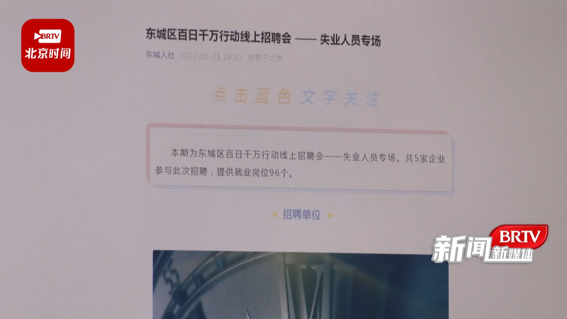 “一对一”服务企业,分类别举办专场招聘会,开展线上直播带岗……今年以来,特别是疫情期间,东城区通过多种方式精准服务企业,缓解企业用工难题,为辖区求职人员提供可靠的工作岗位,有效地促进了就业。