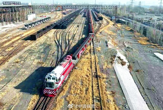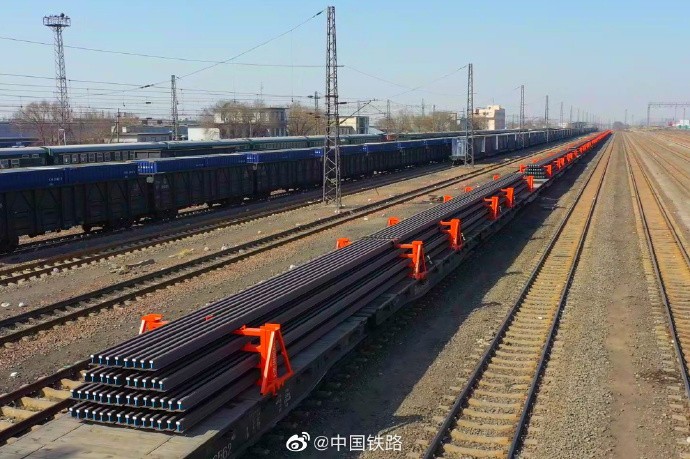 3月7日19时01分,随着一声风笛长鸣,23514次专列牵引44车50米长钢轨从包头西站缓缓驶出,发往天津东大沽站。它们经过陆海联运将最终抵达欧洲,用于匈(牙利)塞(尔维亚)铁路建设。