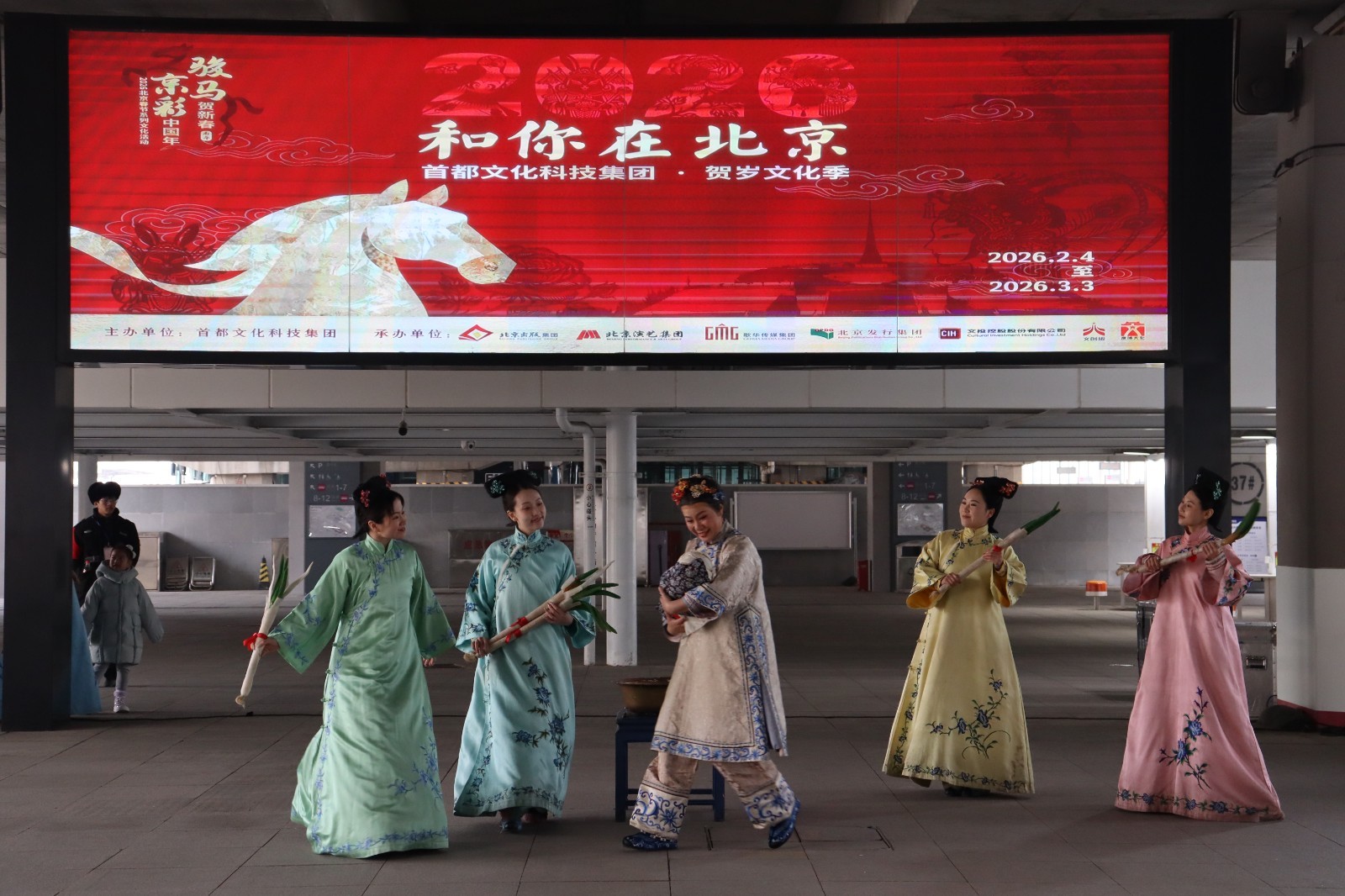 依托清河站区开阔的户外空间,老舍先生的自传体经典《正红旗下》,“洗三”“顺顺当当”两个选段也接连登场,将老北京的民俗风情生动铺展在观众眼前。“洗三”选段中,演员们凭借诙谐风趣的台词、轻快灵动的唱腔,还原老北京新生儿洗礼的传统习俗,引得现场阵阵欢笑;“顺顺当当”的旋律轻快明朗,演员们与观众挥手互动,齐声传递吉祥祝愿,将现场气氛推向高潮。市民旅客拿出手机记录精彩瞬间,孩童们好奇地驻足凝望,老人们则轻声跟着哼唱,熟悉的京味儿唱腔勾起心底的温情。