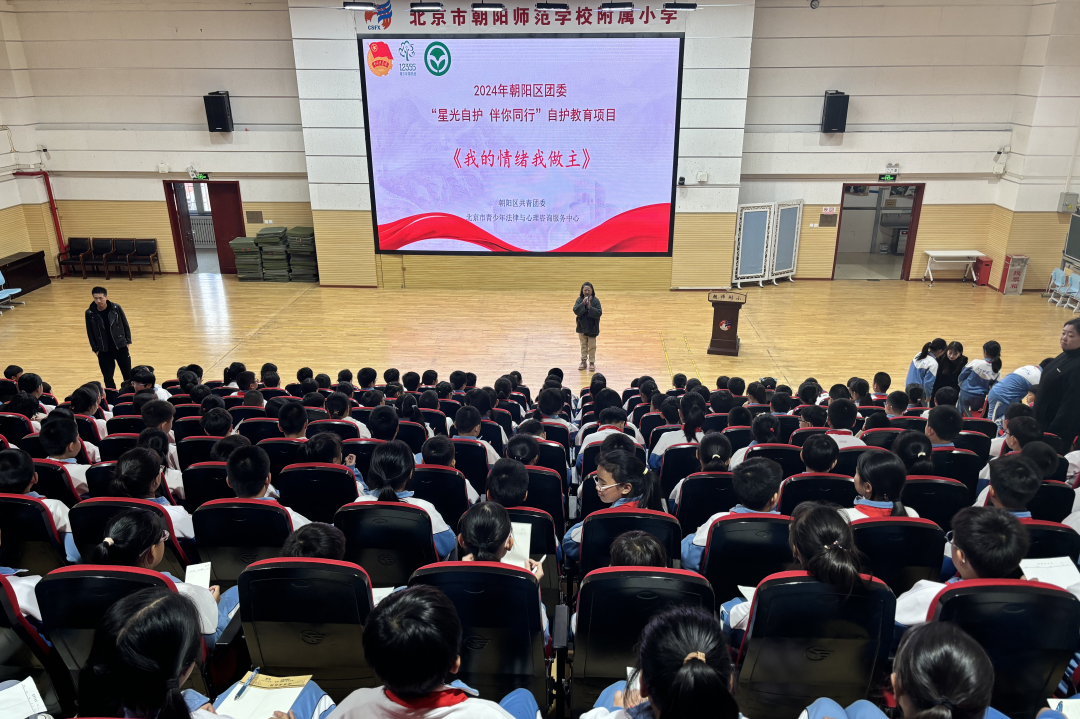 为帮助青少年更好地认知和管理情绪,提升心理健康水平,普及心理健康知识,10月21日,太阳宫地区团委在朝阳师范附属小学举办了“我的情绪我做主”主题讲座,此次活动为团区委2024年朝阳共青团“星光自护”公益巡讲活动,共计300余名学生参加。