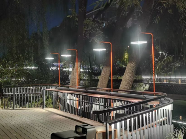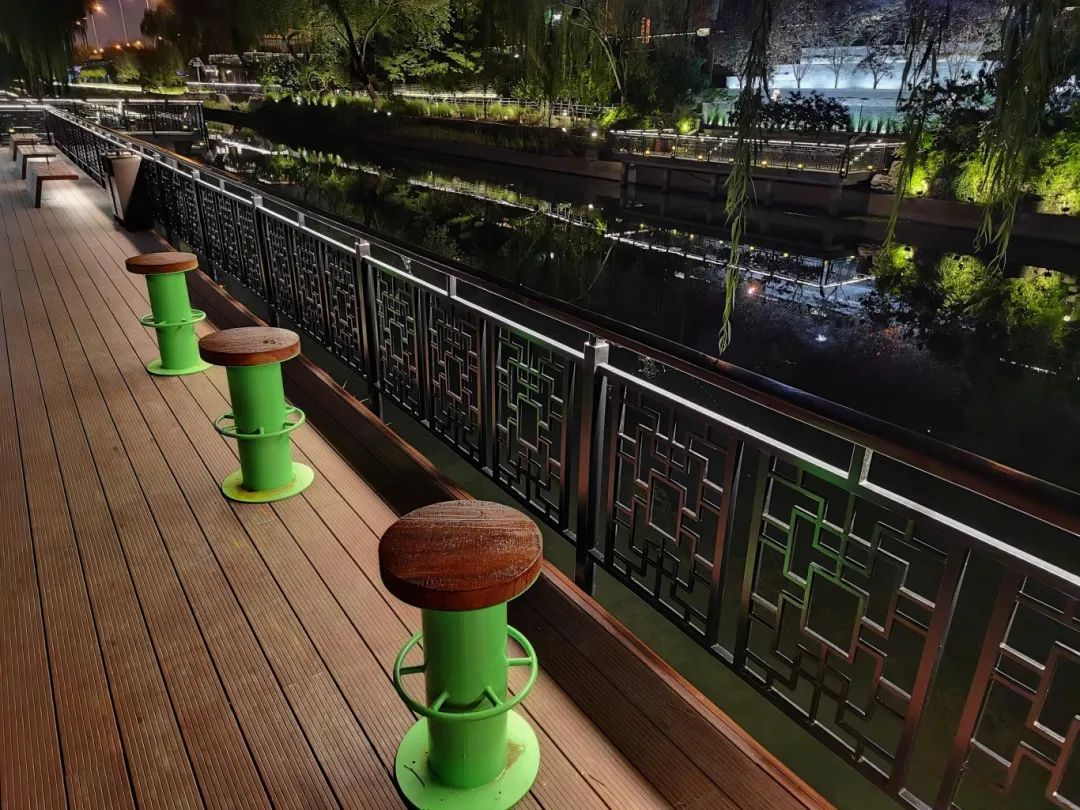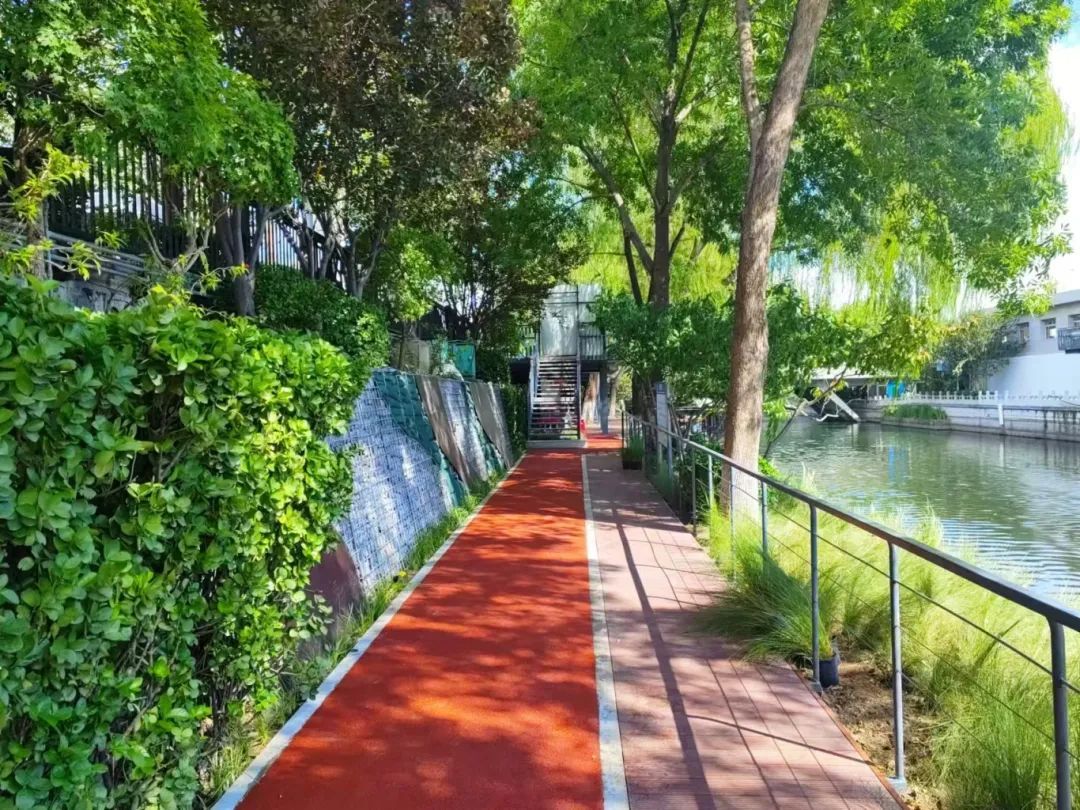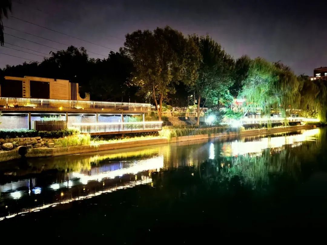 改造后的河道南北两岸共增加了约900米木栈道,在沿滨水步道局部有条件的区域增设滨水看台,栽植了菖蒲、蒲苇、千屈菜、细叶芒和月季等多种绿色花卉,并结合现状增设夜景照明安置路灯,构建滨水慢行系统,营造出绿色生态的公共空间,激发区域全新的城市活力,为市民提供了一个休憩望水的好去处。