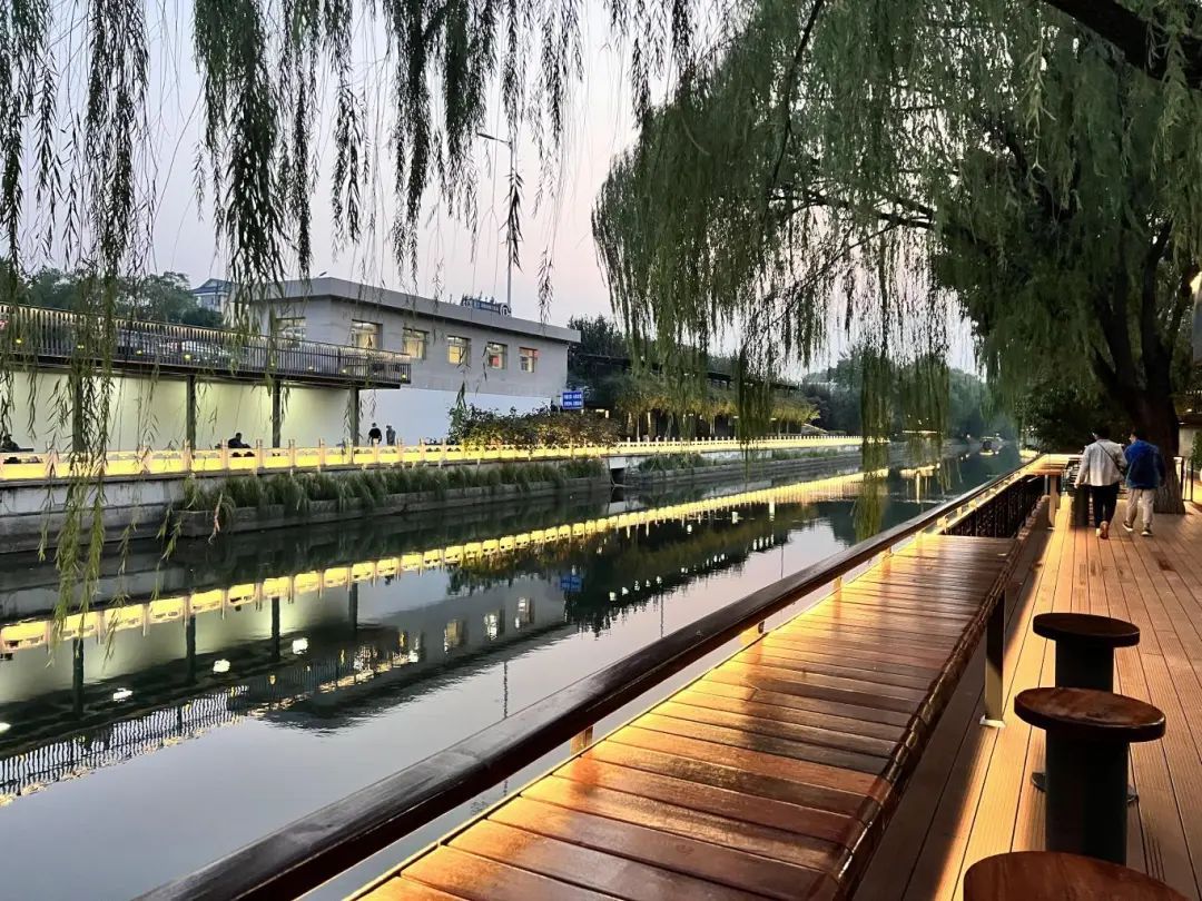 日前,在北护城河,市民发现河道两岸增加了不少木栈道,设置了滨水看台,就连傍晚遛弯儿时沿途的路灯也变得更亮了,四周被种满的绿植围绕,仿佛走进了绿色氧吧。
