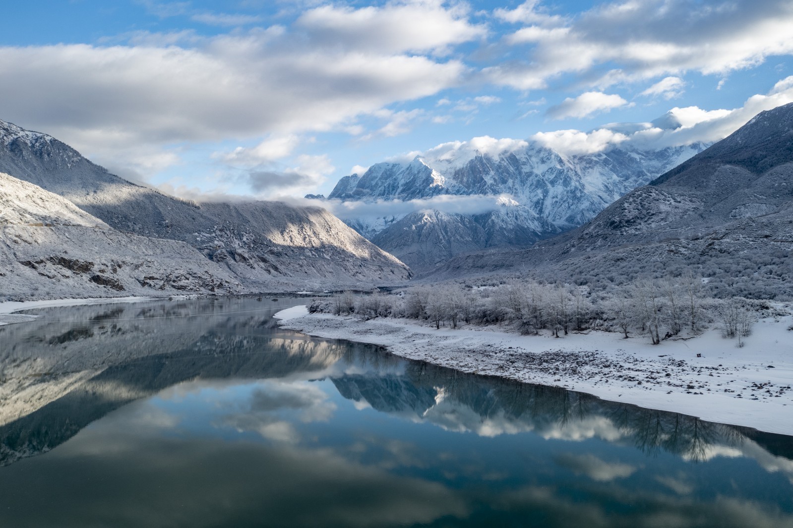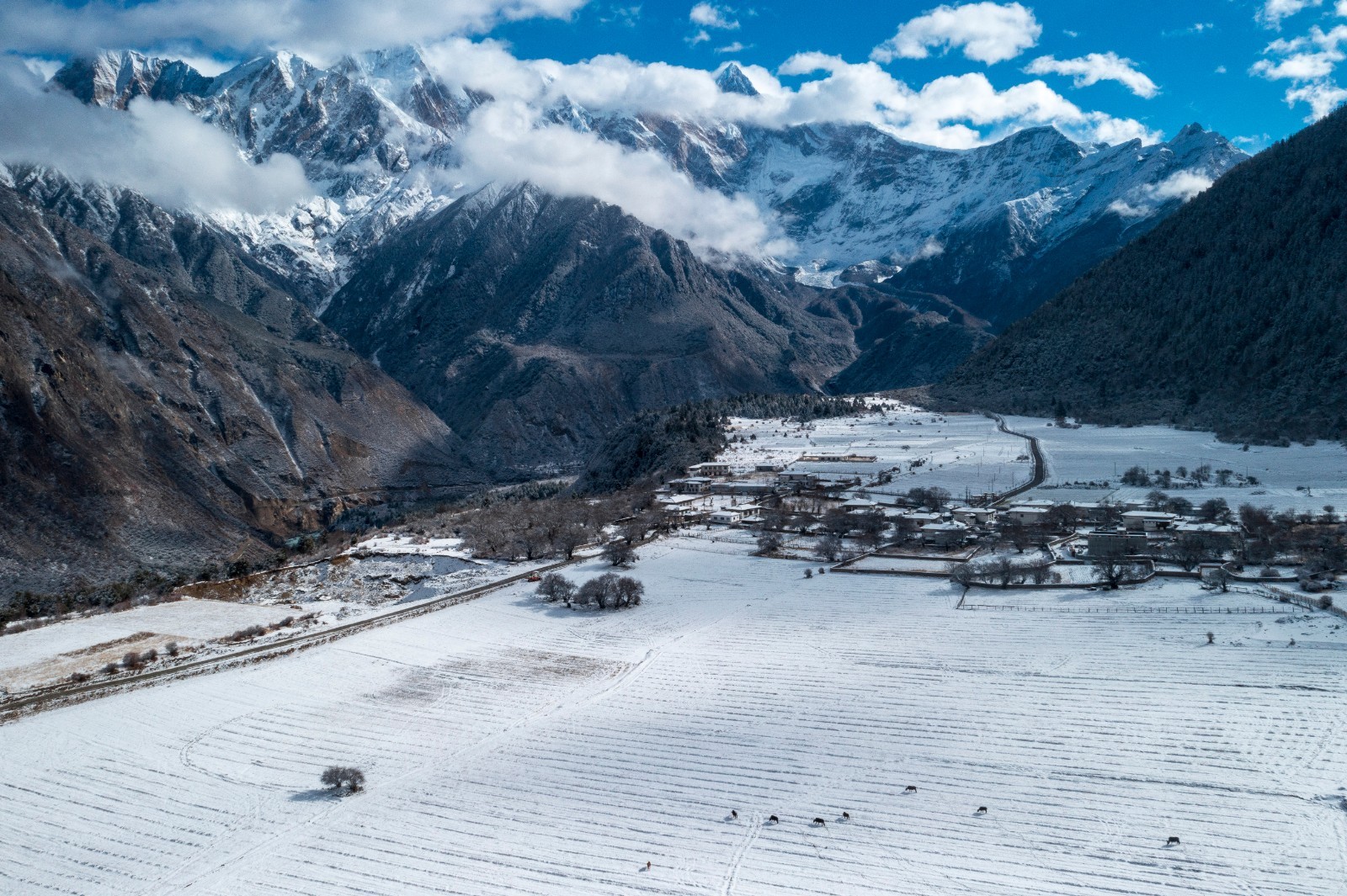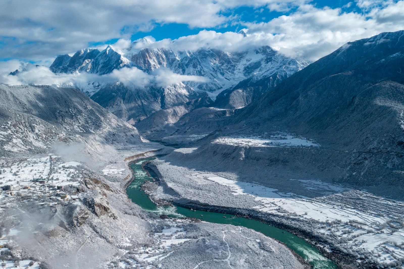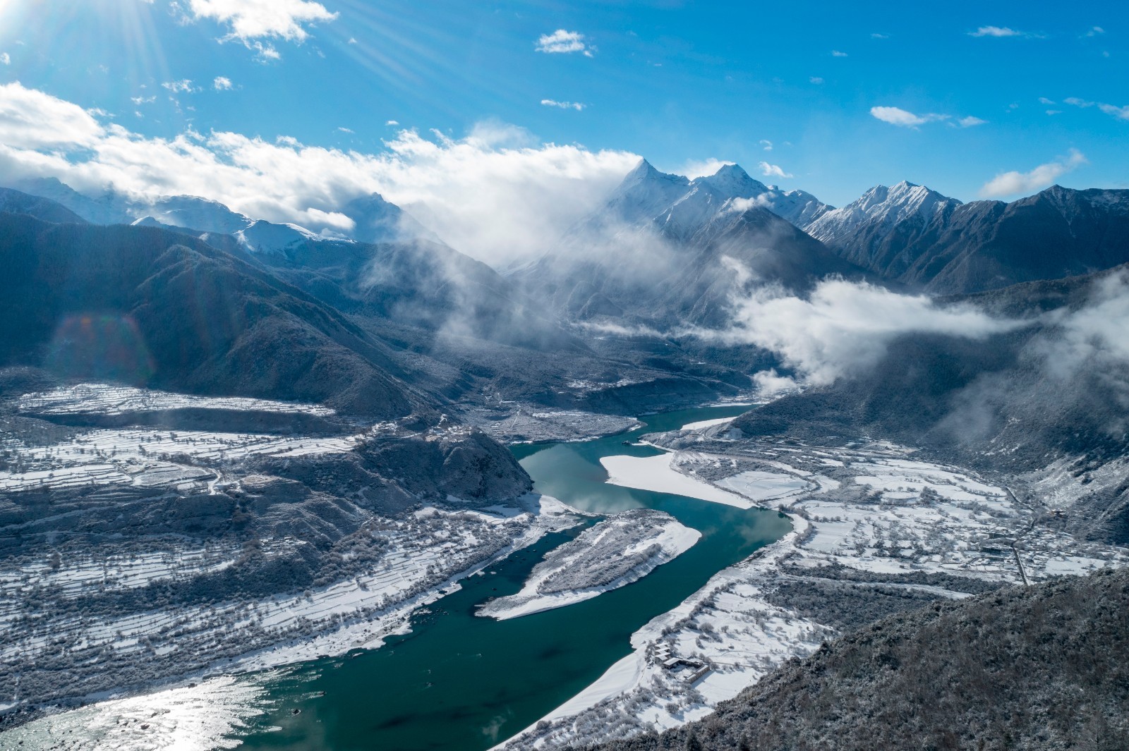 14日清晨,西藏林芝市米林县派镇雅鲁藏布大峡谷附近普降瑞雪,逶迤磅礴的雅鲁藏布江和高耸入云的南迦巴瓦峰雪后显得格外壮美。