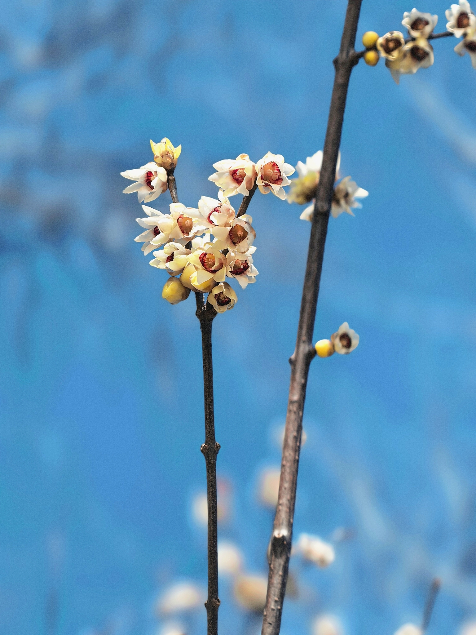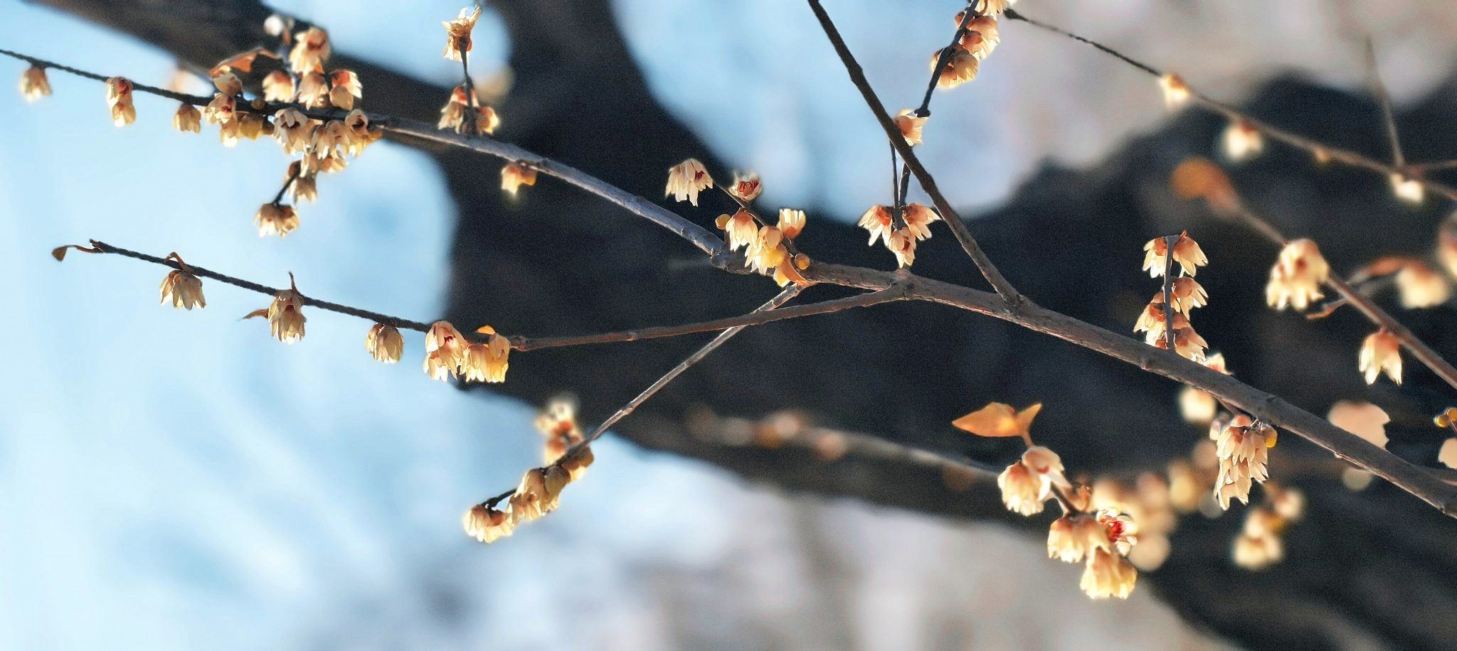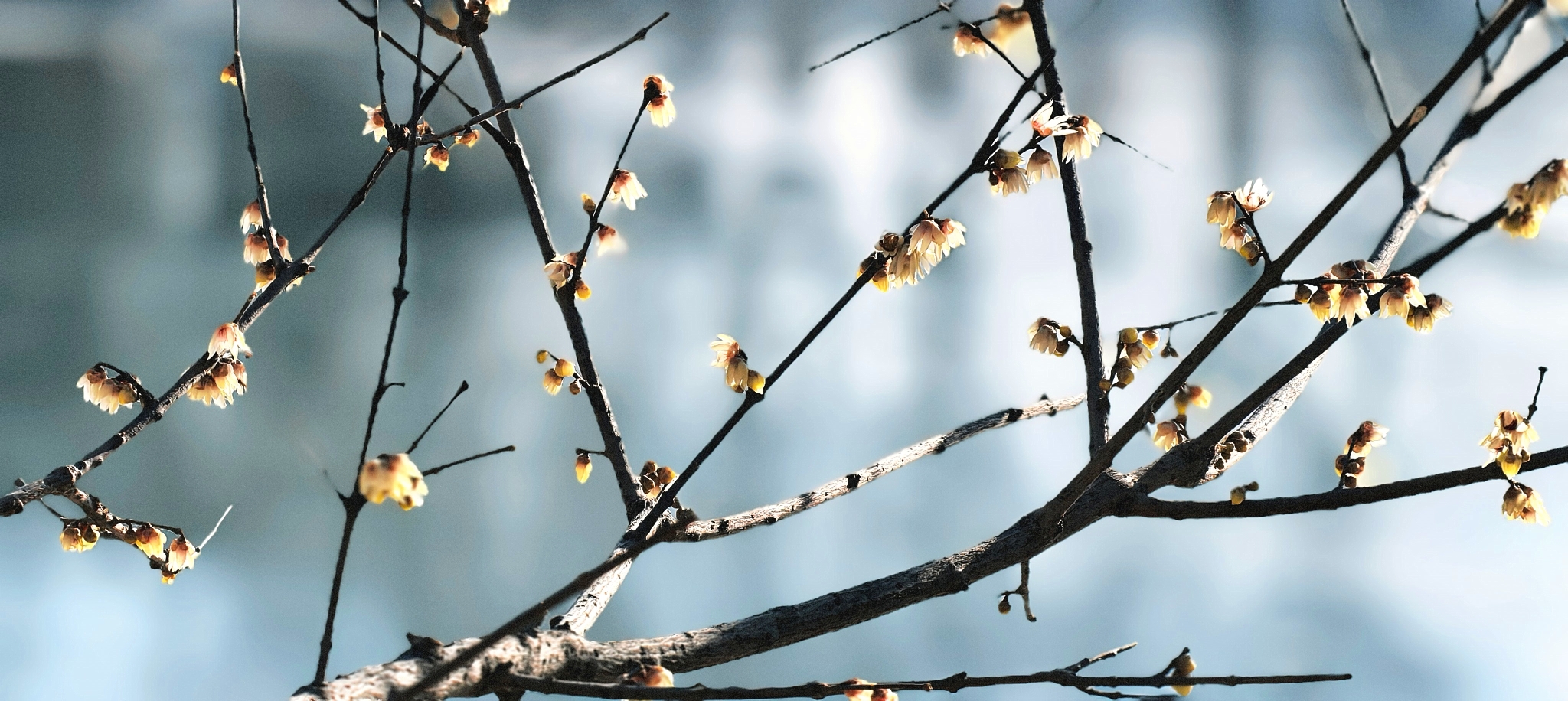 那些裹着蜜蜡般光泽的鹅黄花苞,便在枝干间次第舒展,为冬日的清寂缀上点点暖光。