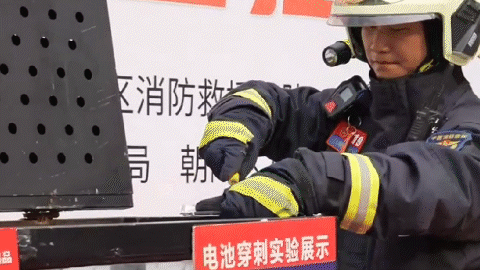 此外,消防员利用新式消防试验装置,模拟演示了电动自行车锂电池爆炸现场和高层火灾应急疏散逃生方法。
