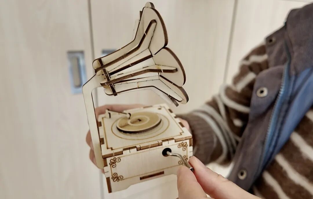 孩子们制作的八音盒/记者拍摄