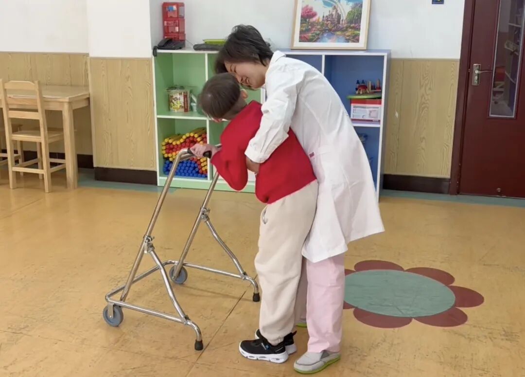 就在那一瞬间,缪怡想要小北实现梦想。她和同事们一起熬夜查阅国内外关于脑瘫儿童康复的资料,制定细致的训练方案。每天坚持给小北做康复按摩,经过了2000多次的康复按摩,小北自己也特别努力复健,慢慢地就能扶着墙站起来走,到现在能拿着助行器自己走了。
