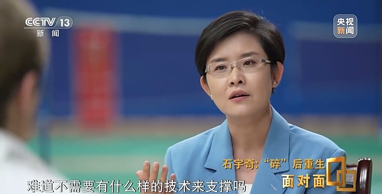 石宇奇:竞技体育就是这样,因为冠军只有一个。都想去当最后一个没砸碎的“鸡蛋”。但是一筐“鸡蛋”砸到墙上,有哪个真的不会碎吗?所以很难挑出一个很坚硬的“鸡蛋”出来。所以只能通过不断黏合、重复,经历困难,有可能你会得到你想要的目标,也许你会一直碎在那里。黏起来,就是重新站起来、重新接受自我,如果没有黏起来,就是放弃了。