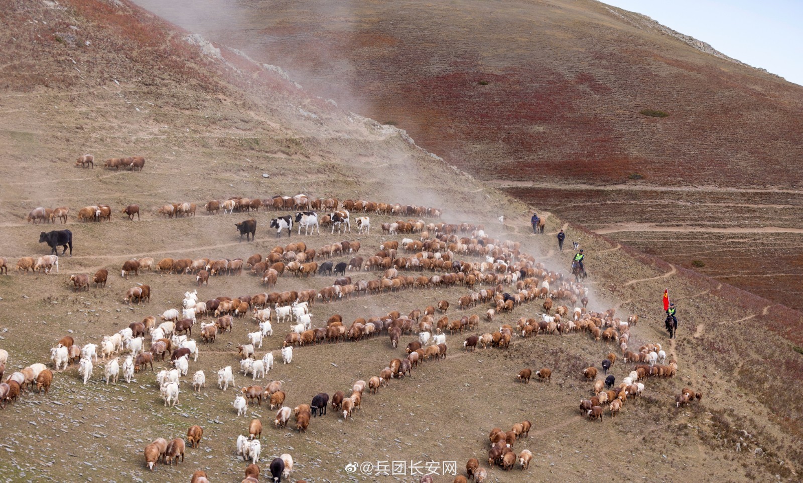 气势恢宏!航拍新疆塔城牧民秋季大转场_北京时间