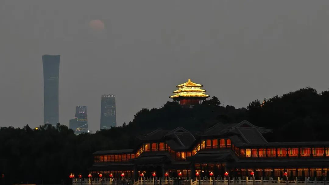 中秋夜,景山万春亭与“超级月亮”同框。白继开 摄