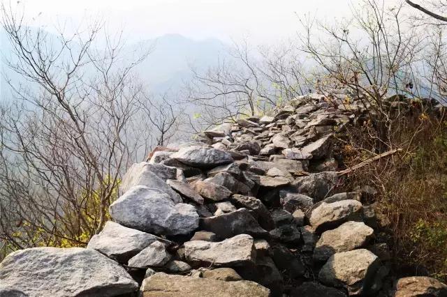 走进周家寨楚长城遗址,首先看到的是这样一截截残破不全、斑驳古老的石城墙。城墙多采用当地的花岗岩干垒而成,未使用灰浆等粘合物。但屹立两千六百多年岿然不倒,足以说明楚长城的这种构造虽然原始、粗糙、简单,但完全经得起风雨的洗蚀和岁月的考验。