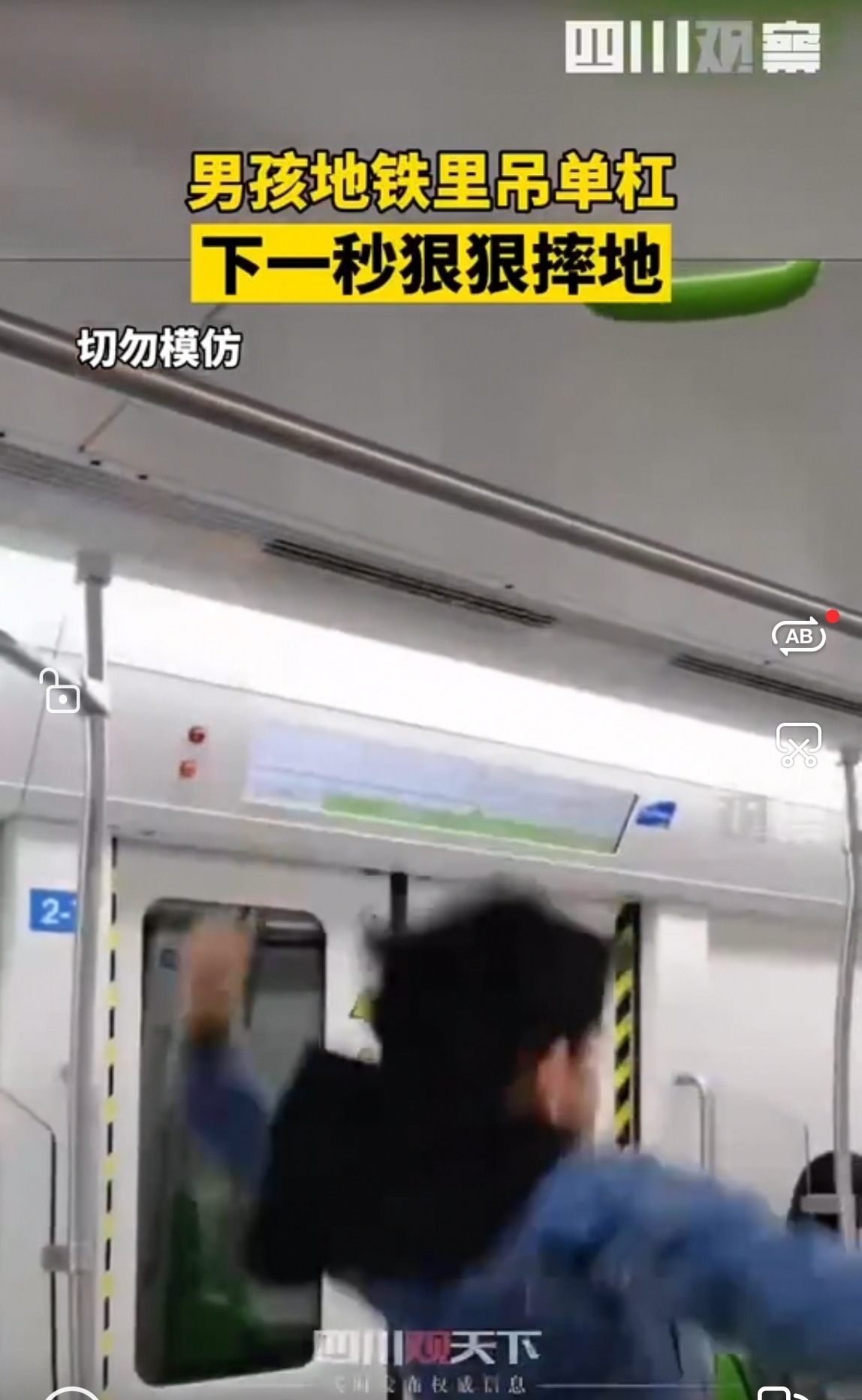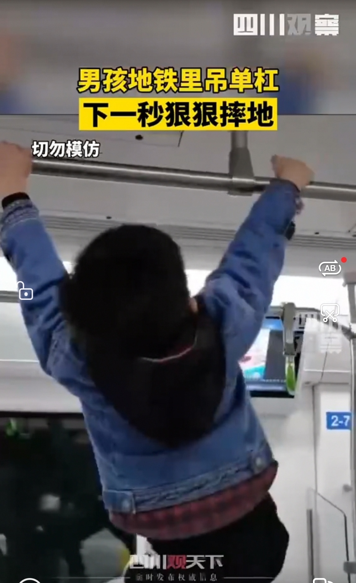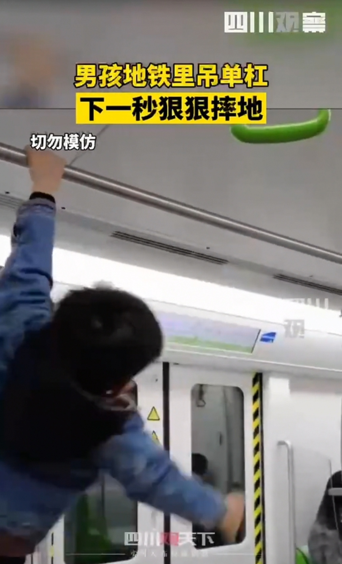 “熊孩子”!男孩地铁内吊单杠 下一秒狠狠摔地!,熊,孩子,男孩,地铁,内,吊,单杠,下,一秒,狠狠,摔,地