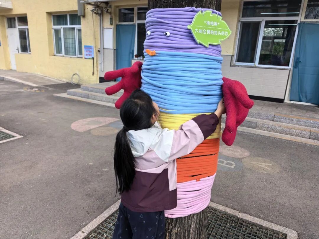 “抱抱树”还搭建起隐性的育人桥梁,“抱抱树”紧邻教师办公室门口,一旦有情绪低落、状态不佳的孩子在这儿和大树说“悄悄话儿”,老师们就能够第一时间察觉、主动跟进,及时疏导孩子的心理压力,用温暖的陪伴,守护每一位学生的健康成长。