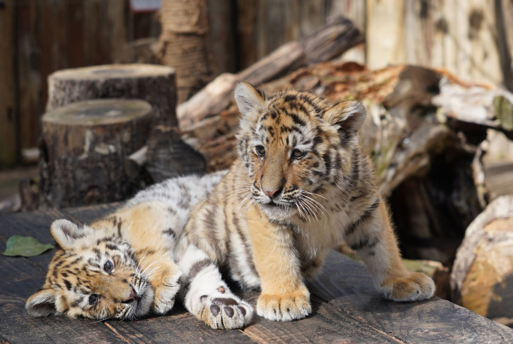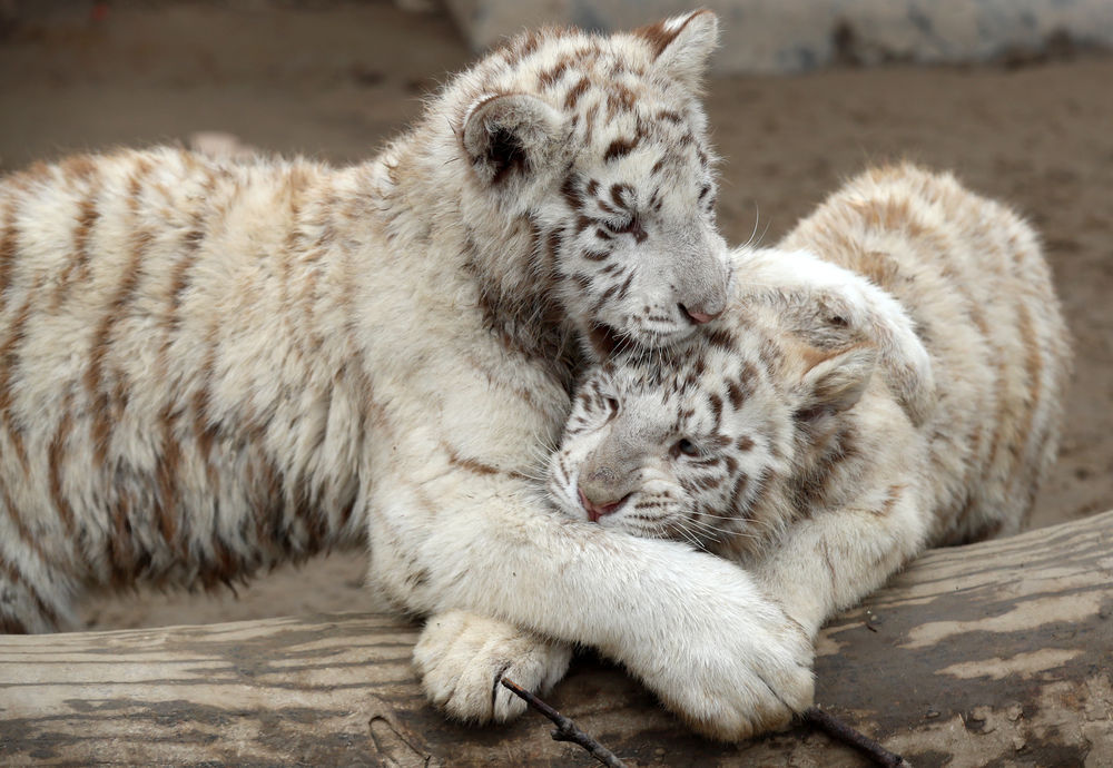 ↑1月29日在江苏南通森林野生动物园拍摄的双胞胎小孟加拉白虎。