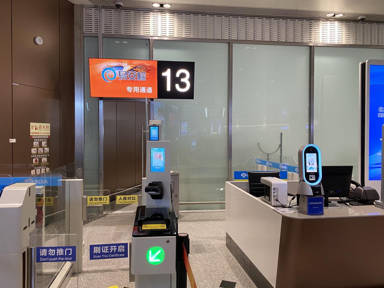 记者了解到,大兴机场“易安检”服务专用通道设在航站楼三层东侧13号安检通道,开放时间为早上5:00至夜航结束。大兴机场在安检现场设有醒目的海报、易拉宝等宣传标志,旅客持“易安检”通行码,在安检前端二维码核验终端进行人脸识别,识别成功后即可体验服务。