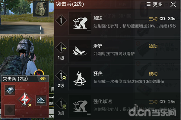 突击兵非常适合喜欢火拼刚枪的玩家,并且需要具备一定的操作技术,这个技能可以使自己的移动速度增加20%,持续15秒。如此高的移动速度可以快速支援战场,并且在对拼的过程中能灵活走位躲避对手的攻击,如果手法风骚对面玩家的手机屏幕根本看不到你。