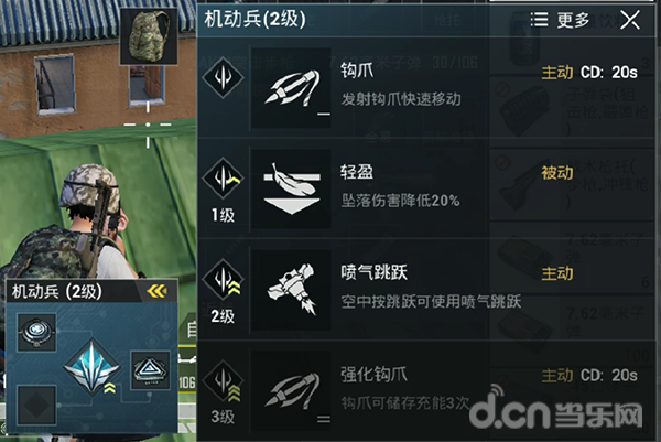 首先是本人认为五个装备里最有用的机动兵,也是最好玩的一个装备,这个装备可以发出一个钩爪将玩家拉到高处,到达一些平时在游戏里上不去的高点,这些位置以前需要一定的角度和方式才能上去,用机动兵的技能就可以直接搞定,甚至可以在屋顶上面来回穿梭转移。