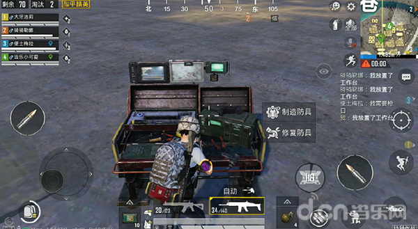建造一个持续时间2分钟的工作台,队友均可在上面对自己的防具进行维修,可恢复50%的耐久度。这样捡到三级装备也不用担心被敌人打碎了,甚至还可以打造防具供队友使用,非常适合游戏中期交战过后的装备,在防具消耗差不多后利用后勤兵维修一下,补满状态进入决赛圈。