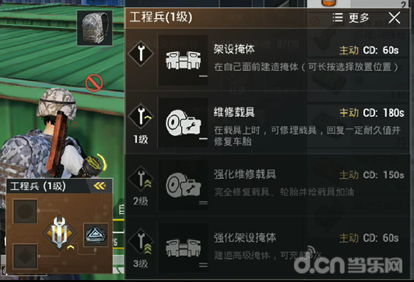 工程兵是团队中非常实用的一个技能,尤其是在决赛圈与对手进行阵地战时,可以扩大自己的活动范围,甚至在拉枪线时也可以选择一些位置好但是空旷的地方。而且在游戏过程中再也不用担心载具被对手卸胎的尴尬。