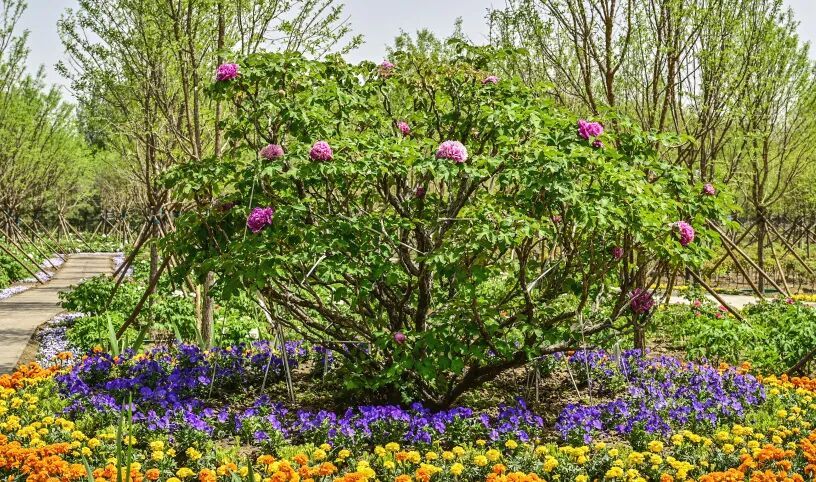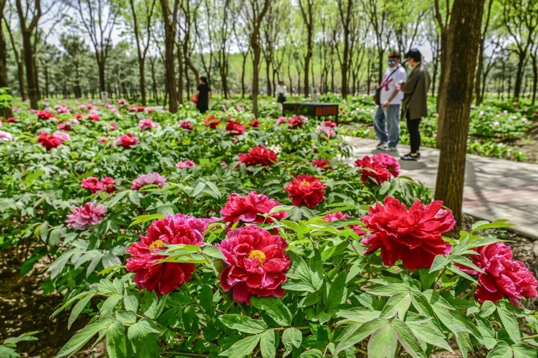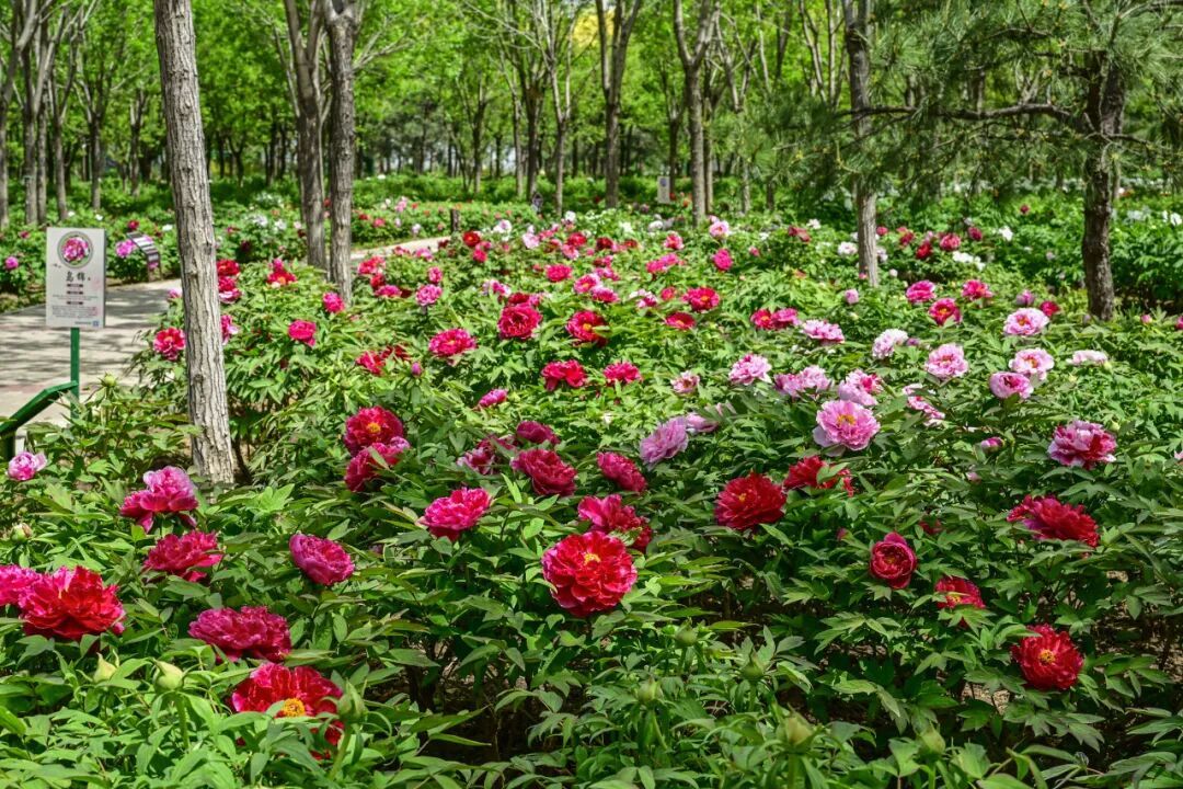 园内共种植牡丹100多个品种、15万株,芍药20万株,搭配玉兰、月季及各类地被植物,形成“三季有花、四季常青”的生态景观带。