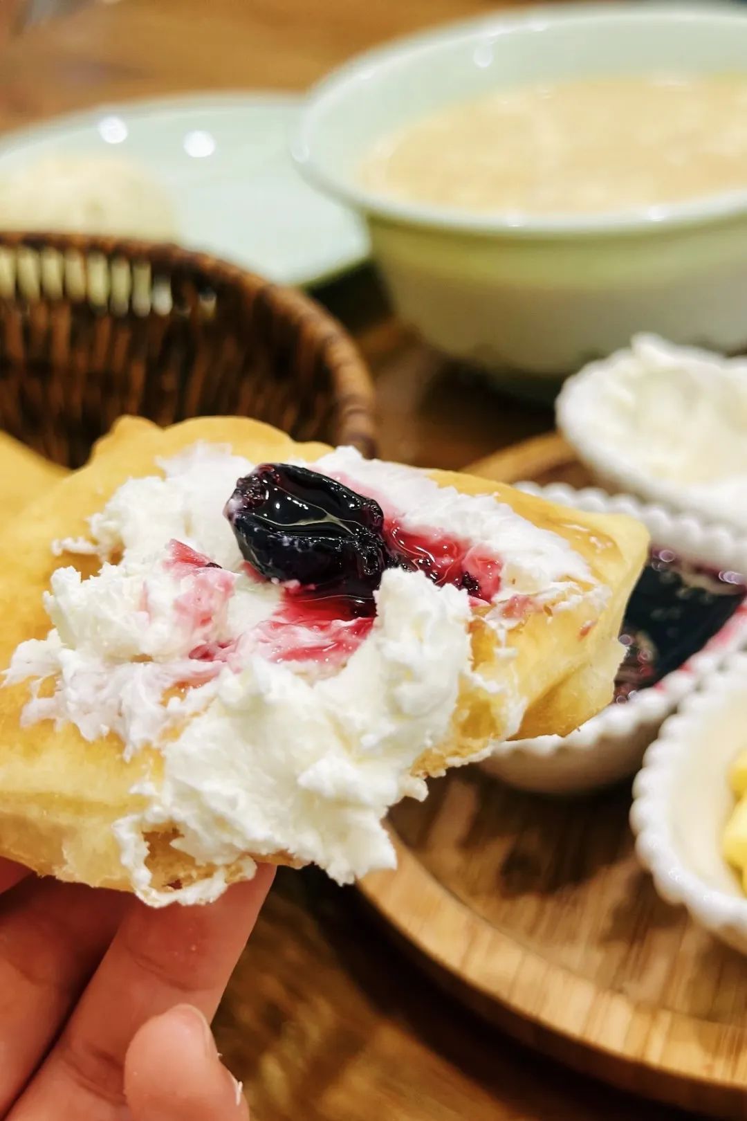 吃法上,可以夹甜甜的果酱和奶酪,也可以选择小凉菜,当然直接吃也很美味。您可以按照自己的口味,随心搭配,再配上一碗滚烫奶茶,下肚后人立马就会变得元气满满!