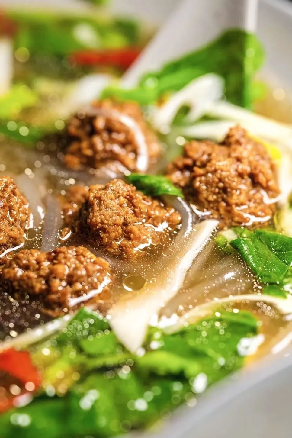 做好一碗丸子汤最讲究两件事:一是汤的品质,二是丸子制作。汤是每天现熬的牛骨汤,单是吸溜一口,整个身体就能热乎起来。