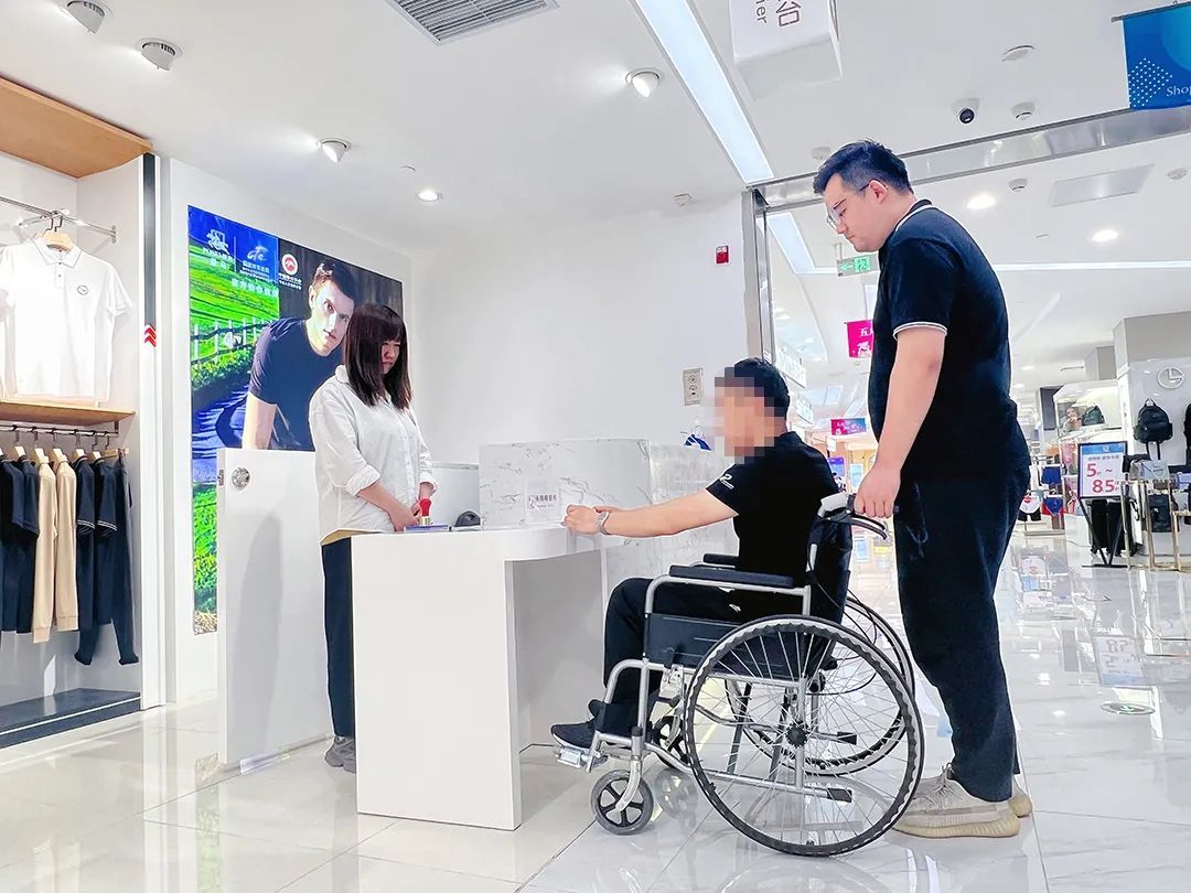 商场六层服务中心设置无障碍服务台,配备轮椅、放大镜、助听器、手写板等设备,为有需求的人群提供贴心服务。此外,商场还设有无障碍卫生间,低厕位、低洗手池及专用扶手,还安装了紧急呼叫按钮应对突发状况。国泰百货客服主管刘佳介绍:“在区残联的指导下,我们重点对商场出入口坡道、无障碍卫生间及无障碍标识进行升级改造,更好地服务残疾人、老年人等群体。”