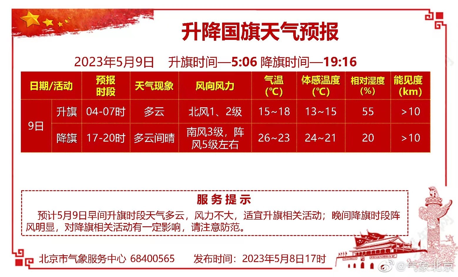 #5月9日天安门地区升降国旗天气预报#