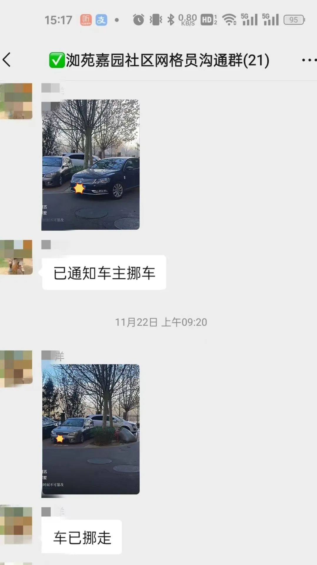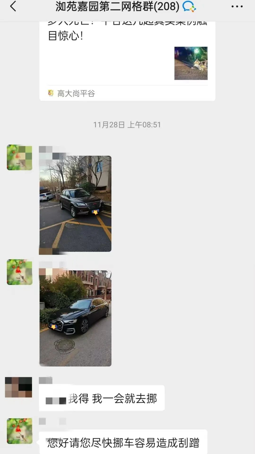 “格”中有事“格”中办。社区以网格群为载体,当发现有车辆违规停放时,物业第一时间将挪车照片发送至网格群,让车主能够迅速知晓自己的车辆给他人带来的不便。这种方式不仅提高了信息传递的效率,促使车主尽快改正不文明的停车行为。