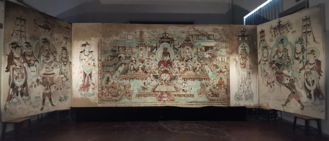 黄松峪综合文化中心正在展出《我们的敦煌》壁画展,在山水间“峪见敦煌”。壁画展由中央戏剧学院舞台造型体现专业学生们创作。