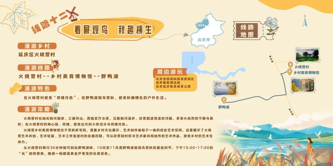 在火烧营村感受“荷塘月色”,在野鸭湖观鸟赏秋,感受秋趣横生的户外生活。