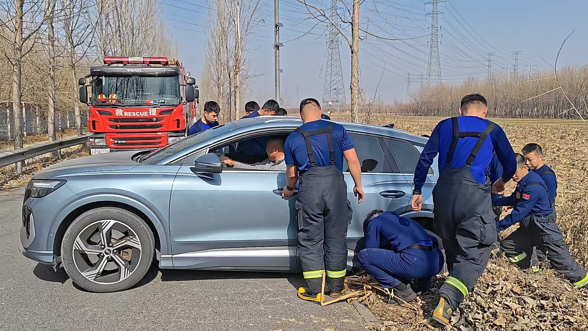 车辆不慎陷土里消防员归队途中伸援手_北京时间