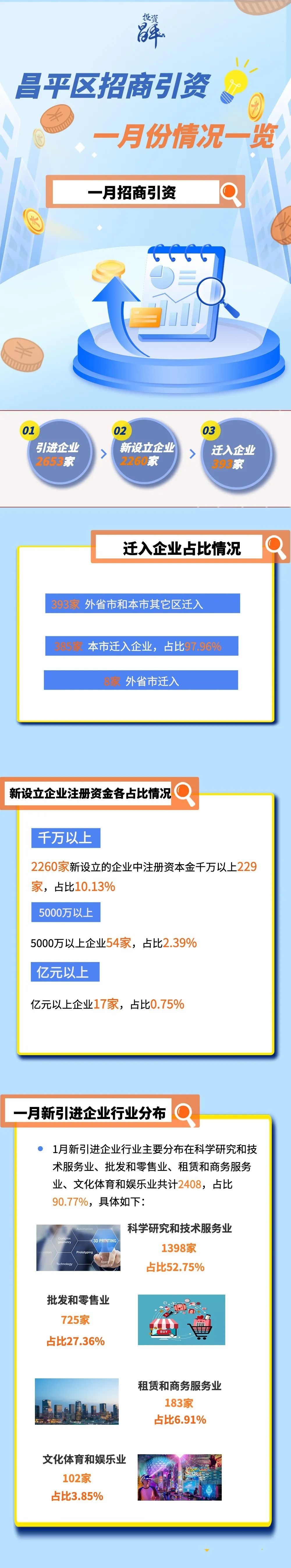 昌平区1月份引进企业2653家,其中亿元以上17家