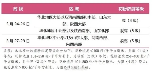 3. 注意防护!27至29日北方多地花粉浓度高峰期