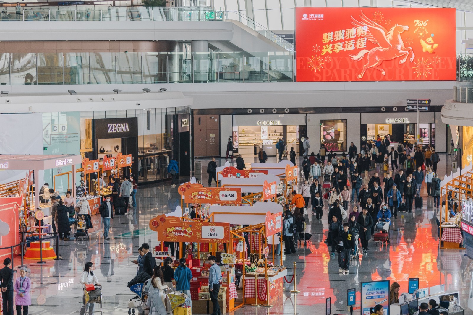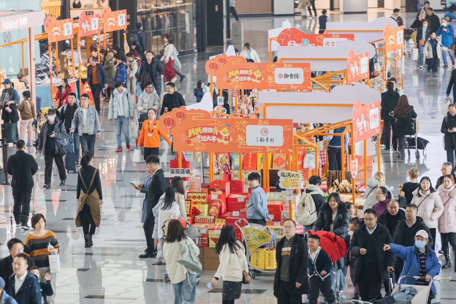 伴随2026年春运大幕拉开,为进一步营造浓厚春节氛围,丰富旅客出行体验,2月4日,北京大兴国际机场“归兴肆见”新春市集正式启幕。市集以“文化体验+趣味互动+便民消费”为核心,通过构建沉浸式年俗场景,为进出港旅客提供一站式购置年货新选择。